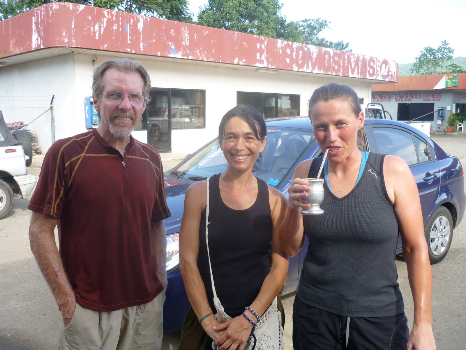 Llegando… llegaste… a Chiriquí Grande me encontré a Marisa y Gery, los ciclos viajeros, ahí nomás compartimos un matecito, a la vera de la loma montañosa, carretera de cuestas y a la izquierda el mar Caribe. Quedamos de encontranos en el cruce de Chiriquí Grande donde sale la ruta a David, donde estoy ahora, ruta ésta que empalma con la Panamericana. Mientras esperaba a los ciclistas conocí a tres chicos que se me acercaron hablando en otro idioma, nebo… de una. Me preguntaron «mocoñó»? María, les dije antes de preguntar qué significaba, tico María. Me llamo María.