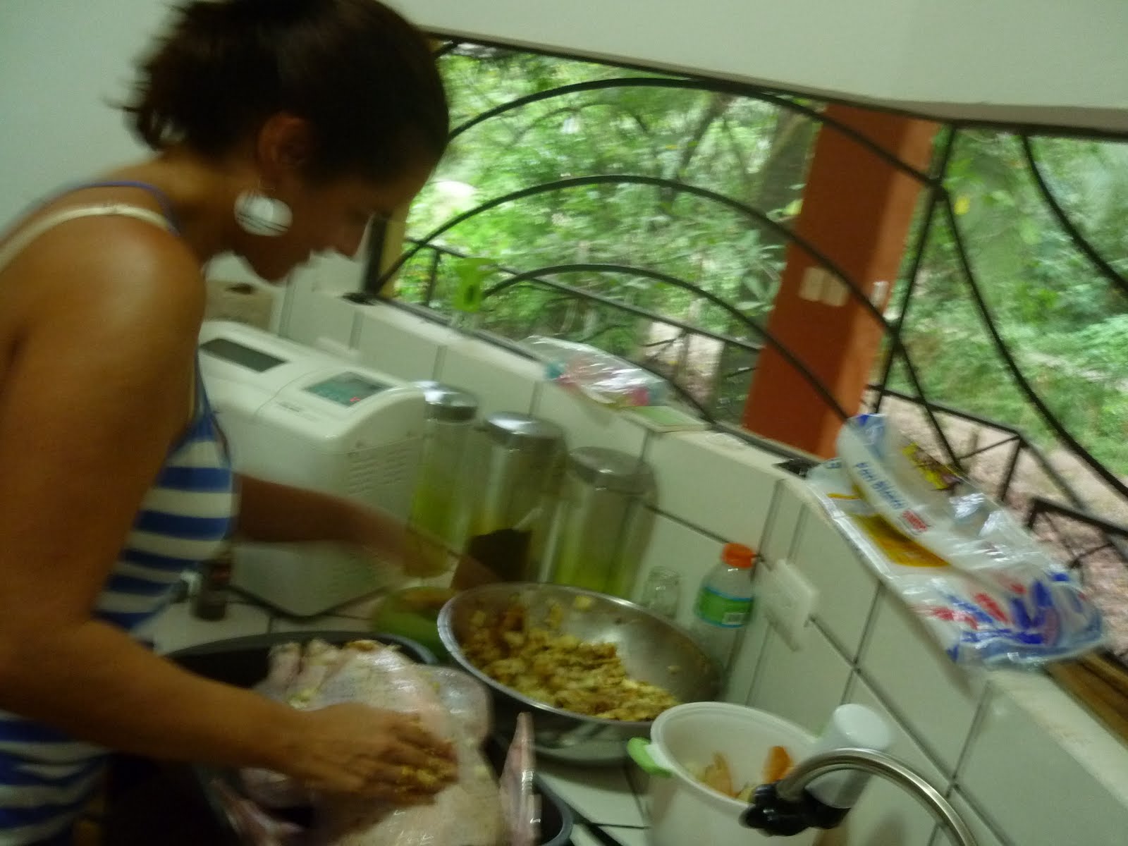 Estoy en casa de mi amiga Lucie Angers. Nos conocimos en Guanajuato. Ella vivio en mi casa cuando fue a estudiar espaniol -no enies, no acentos- hace como 5 anios. No nos habiamos vuelto a ver y por esas cosas de la vida, pocos dias antes del fin de octubre me contacto en facebook. Vive en Samara (esdrujula con acento en la primer a), region de Guanacaste en la peninsula de Nicoya. Entre la ciudad de Nicoya y la playa de Samara, la ruta es angosta y la envuelve un verde exhuberante que execede su gama a dorados y rojos. Iba sacando fotos a diestra y siniestra, ya casi llegaba al pueblo, y en un cruce de caminos veo a Lucie en la camioneta! Ella salia para la playa, llevaba el celular porque yo la llamaria y se detuvo en el cruce para esperar que pasaran los autos que venian por la carretera principal. Vio un auto rojo, y dice que penso, seria mucha casualidad que esa fuera Maria. Era yo. La reconoci al toque. Y vos que haces aca? Le pregunte yo. Vivo aca, me dijo. Vinimos a su casa, dejamos mi auto y nos fuimos en su camioneta a la playa. La casa es espectacular, me encanta, esta llena de luz, separada de la urbe, rodeada de jungla y termina en un rio. Ella misma la dibujo, la disenio, busco el arquitecto, el maestro mayor de obras y controlo la edificacion. No se dedica a eso. Trabaja en una escuela de idiomas que fuimos a conocer, esta frente a la playa, casi en la playa misma, es colorida y se ve llena de vida y de proyectos frescos. Pasamos la tarde al sol, caminando en la orilla, tomando mates, adentro del mar. Conoci a sus amigos, charlamos, comimos frutas con helado y despues fuimos a Playa Carrillo a ver ponerse el sol.