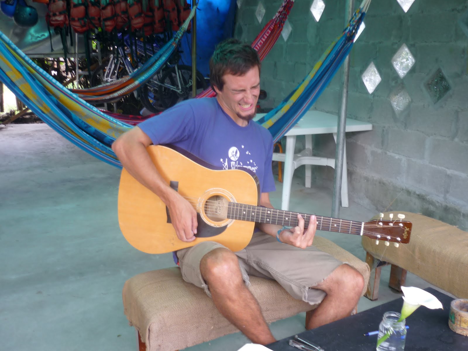 Mi desayuno de hoy no es de arroz con puerco, es de bananas y galletitas de vainilla con mates. Ya me di una caminata laaaargaaaa, despues si en el proximo pueblo, Santa Fe, hay internet pongo fotos. En esta caminata larga vi muuuchas casassss con muchas flores y caminitos de piedras cmo de dibujito infantil y una casita estaba metida en una jungla de plantas, le saque una foto y aparecio el duenio, Celio, y su seniora Mayra y me invitaron a pasar, super gentes.