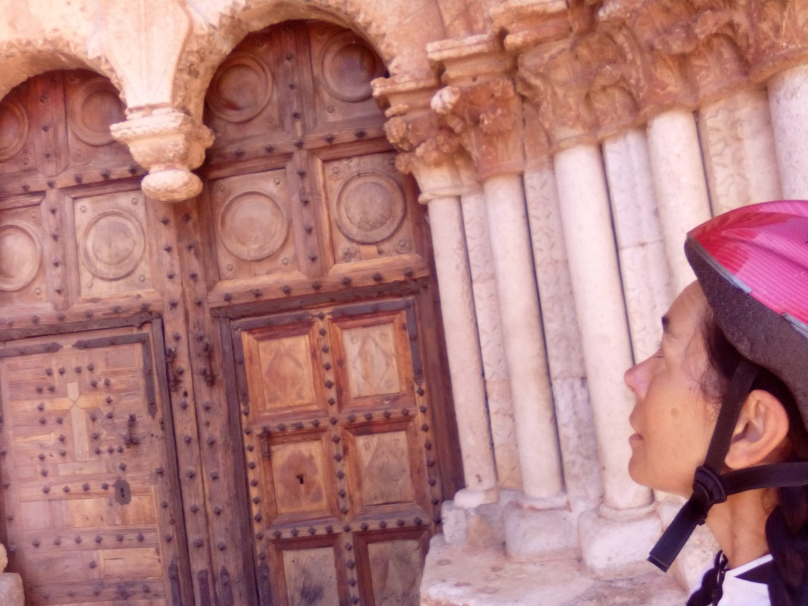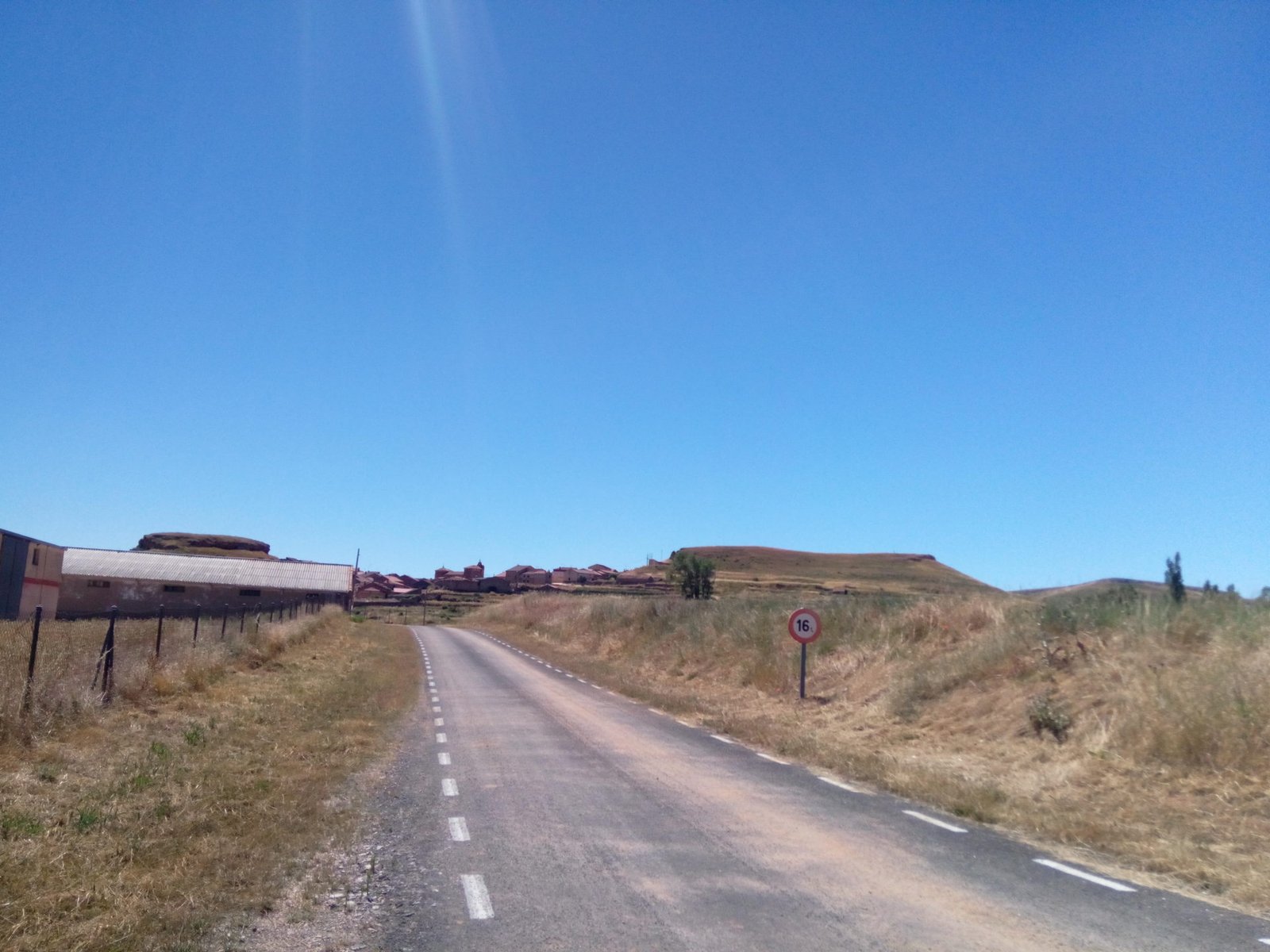 Fue un largo camino ya que, la etapa anterior no terminaba en Quintanarraya sino en Langa de Duero. Pero avancé. En la mañana pasé por los poblados de Hinojar del Rey de donde salen dos caminos que en principio son de piedra, sin asfaltar; sin embargo, el de la izquierda, luego de un repecho por piedrecitas grises, está más firme. Una especie de precario asfaltado pero se pedalea bien. En Langa de Duero, ya en tierras de Soria, paré a hacer una breve visita adonde se encuentra la enorme prensa vitivinícola. Luego, frente a la casa Constitucional observé el enorme nido de cigüeña. Langa de Duero es una ciudad regularmente grande. Más grande que las que venía pasando, con más movimiento de gente y coches. Desde Langa de Duero, toda zona de viñedos, llegué a San Esteban de Gormaz. Una ciudad más o menos grande también, con varias iglesias antiguas y un castillo. Allí, desde el puente sobre el río Duero, puente romano, de piedra, se encaramado en la colino un barrio de casas vacías. Parece una maqueta. Luego le metí pata y pasé por Burgo de Osma pero a mil. Quería llegar a Berlanga donde hay albergue y camping. En buenahora. Dormí en el albergue porque el cuarto está muy bien y acepté la cena que prepara la esposa senegalesa de Andrés, el encargado del camping y albergue municipal. Una cena que me vino al pelete ya que fue lo primero consistente que comí en estos días durante los que venía acabando con todas las pastas, sopas, y comida disecada que había quedado de los viajes del año pasado. La cena, económica, suculenta y muy sabrosa. Ellos muy simpáticos e interesantes.