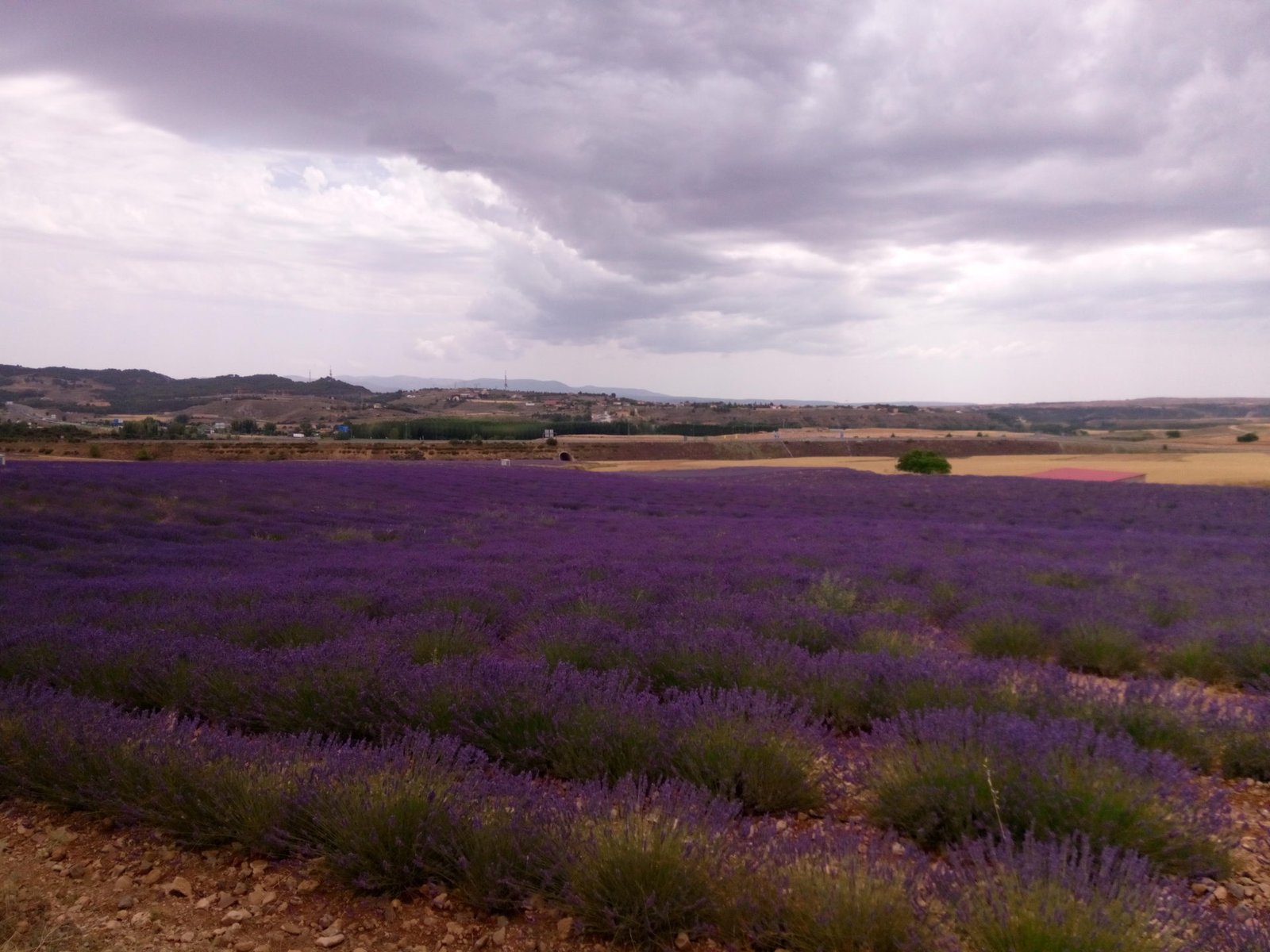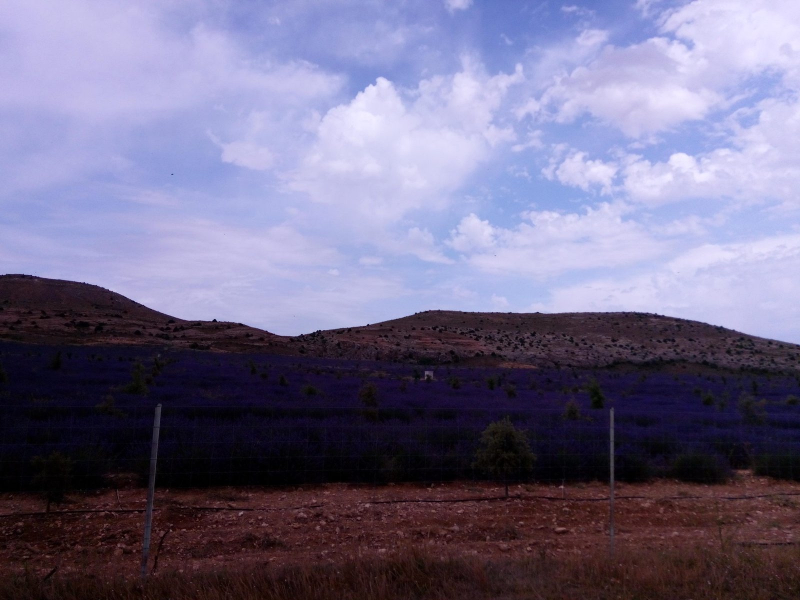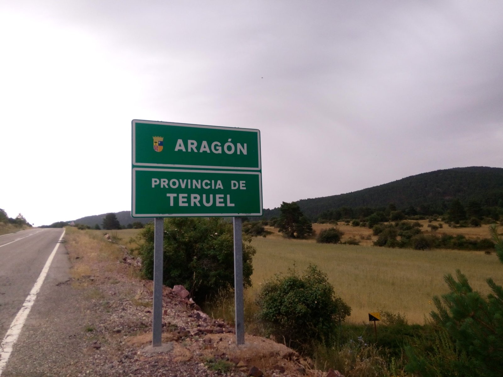Saliendo de Albarracín, repecho y con lluvia. Otra vez hay que remontar y sortear algún paso, pero es un camino alucinante a pesar de los repechos, la lluvias, los collados. Se transita bordeando el pinar de Rodeno y es algo maravilloso, por mí nunca visto antes. Entre enormes moles de piedra. Enormes, gigantes rocas, brotan esos pinares tan bellos. Deja sin palabras, además del sin aliento del camino. Es hermoso. Obliga a parar a varias veces, a detenerse a grabar en la memoria ese paisaje único, respirar. Y luego la bajada, precipitadamente. Después de pasar Gea de Albarracín y el poblado de Caudé tomá la Vía Verde Ojos Negros que en esta parte está bastante fea. Llena de desniveles, irregularidades, mal señalizada, sucia, abandona, con aguas estancadas que huelen mal y yuyales. Vale la pena llegando a Teruel la parte que pasa por los campos de lavanda. Por allí, si alguien no me dice que tengo que abandonar la Vía para salir a Teruel quién sabe hasta cuándo seguía. No hay buena señalización en absoluto. Salí a las autopistas, con lluvia, horrible llegar a Teruel, buscar el hotel, ni con GPS. Luego de alojarme salí a caminar y me volví aperder andando en la ciudad, con GPS y todo. Muy rebuscado todo. No le tomé el gusto a Teruel. Me cansé de buscar el camino. Después de una mañana tan bella a pesar de la lluvia. De tanto pino.