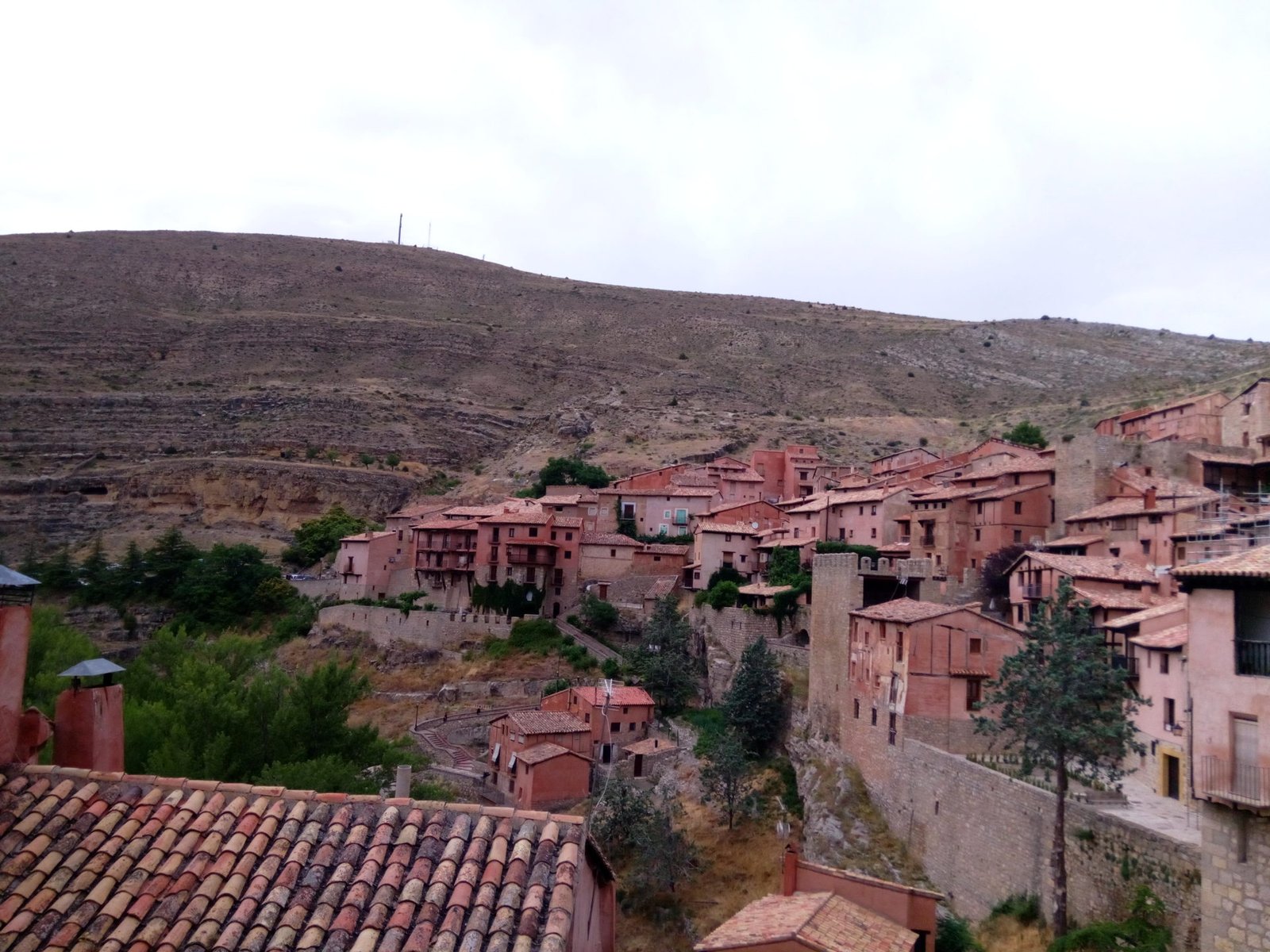 Levanté campamento del bosque y la ruta de hoy, con un poco de lluvia y amenaza de tormentas va pasando pueblos de montaña. Pueblos encaramados en las laderas. Más frescos que lo visto anteriormente. Uno de los primeros es Orihuela del Tremedal. Es hermoso. Piedra sobre piedra. Las casas más encimadas una con la otra. Las calles más angostas. Aprovechando al máximo cualquier lasitud de las laderas. Llovía cuando pasé por allí. Seguí a Bronchales y Noguera de Albarracín. Es un día de pedaleada en el que hay que sortear varios pasos de montaña. El camino es tranquilo. Sin muchos vehículos. Casi nada. Y rodeado de mucha vegetación. Las bajadas son precipitosas. Pasé Tramacastilla y Torres de Albarracín y la entrada en Albarracín es de lo más alucinante. Va la pared de la montaña color naranja sobre nuestra izquierda. La ruta serpenteando. Angosta. Y a la derecha corre un río de aguas claras sobre piedras y con las márgenes tapizadas de helechos y flores. Es un espectáculo. Lo mismo Albarracín. Llegar y ver la ciudad arriba d ela colina. Con todas su construcciones naranjas, terracotas, rojas. Llovió de a ratos. De a ratos salió el sol. Y se levantó un viento terrible. Se volaba todo. Acampé en el camping municipal de Albarracín y salí a caminar por el pueblo con otra cicloviajera llamada también María.