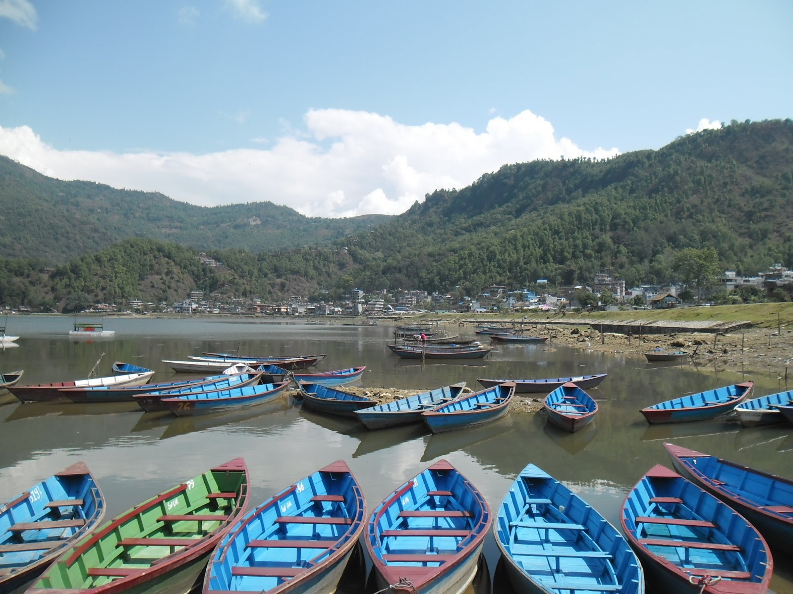 orillas del lago Phewa. Llegamos en un jeep que bajó y subió patinando por los