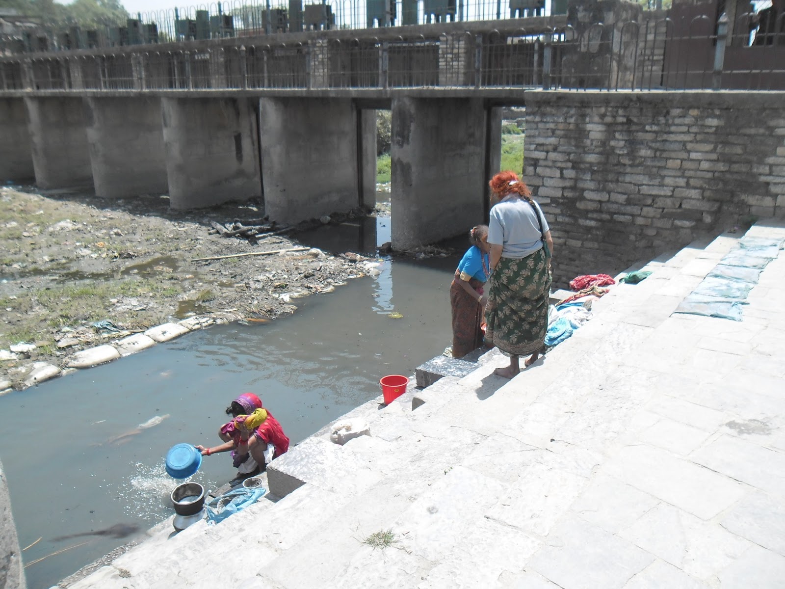 las mujeres lavan la ropa, y más de uno se mete a remojarse las patas.