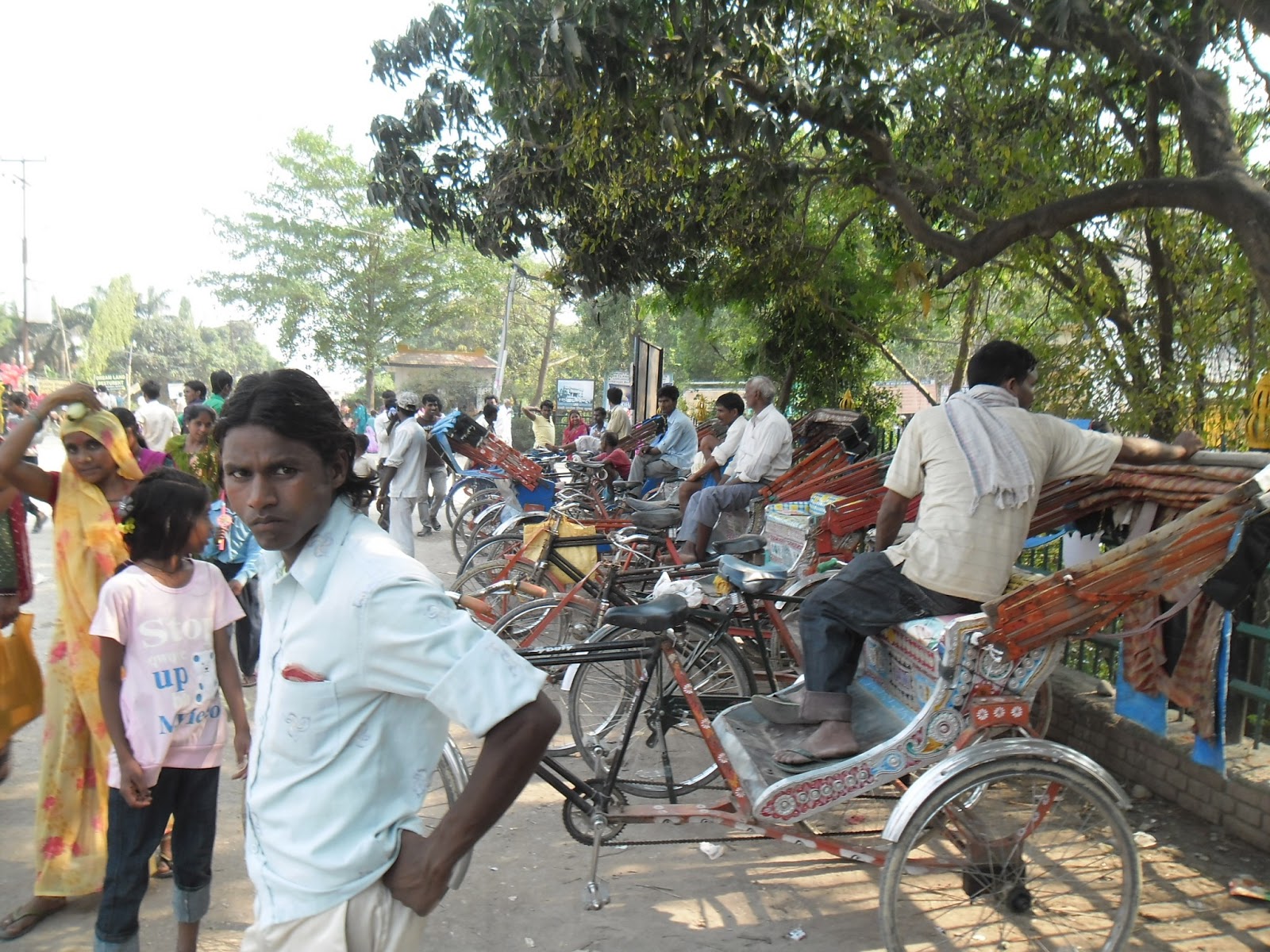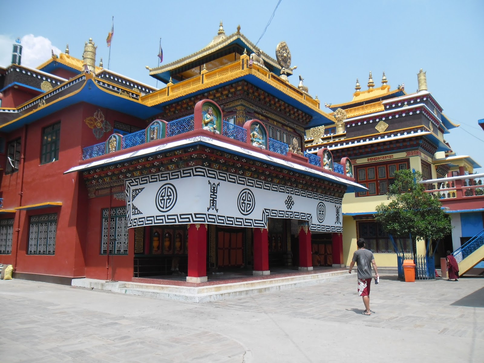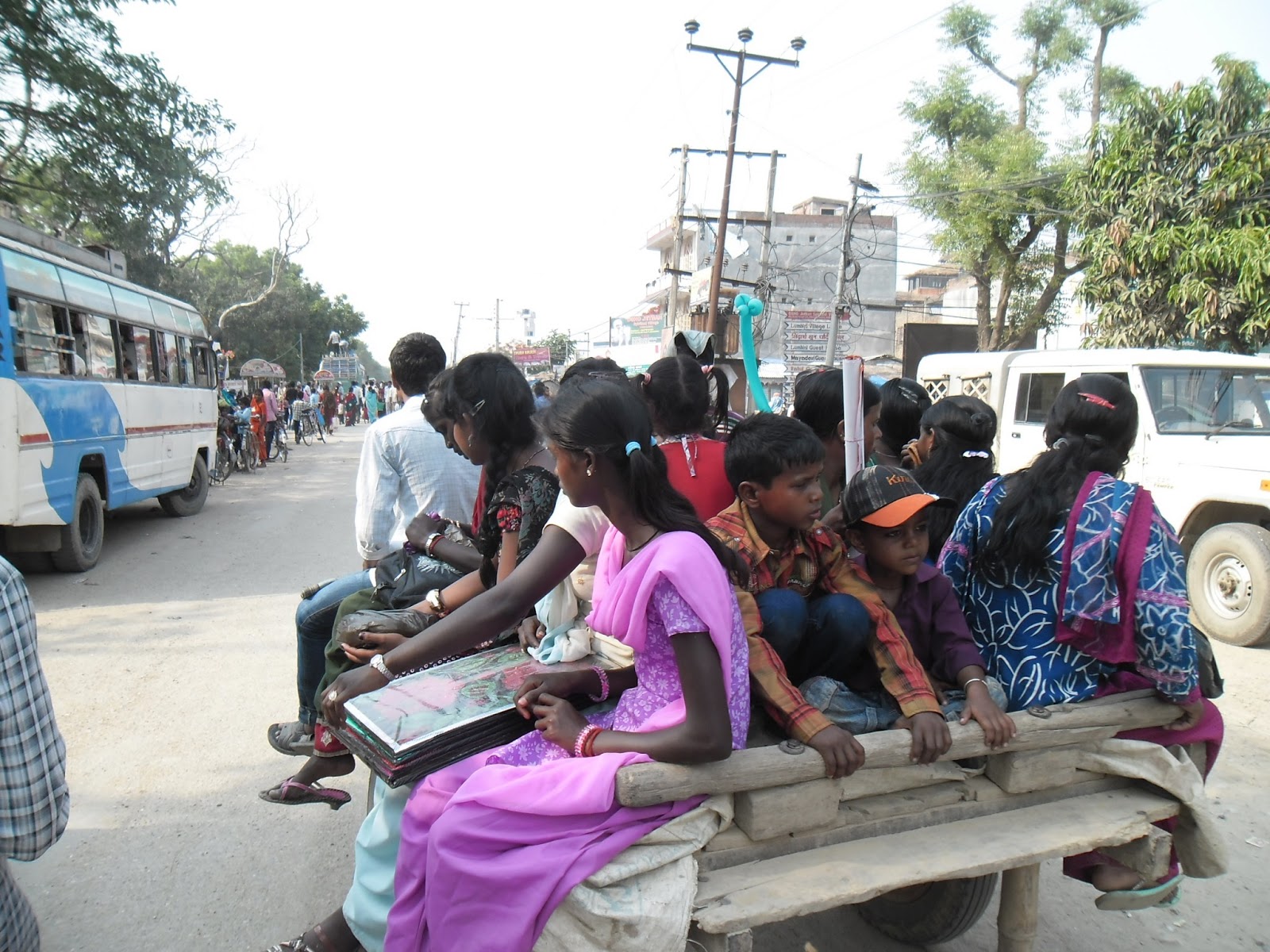 Hace mucho calor. Estamos a pocos metros de la frontera con la India, es muy caluroso, muy húmedo, hoy vimos otra víbora. Hay monos. Sigue siendo ruidoso porque sigue viniendo gente al cumpleaños de Siddharta Buda. Vienen en acoplados tirados por tractores, hasta la manija de gente, y en colectivitos, hasta arriba de los techos y todos colgados de las puertas.