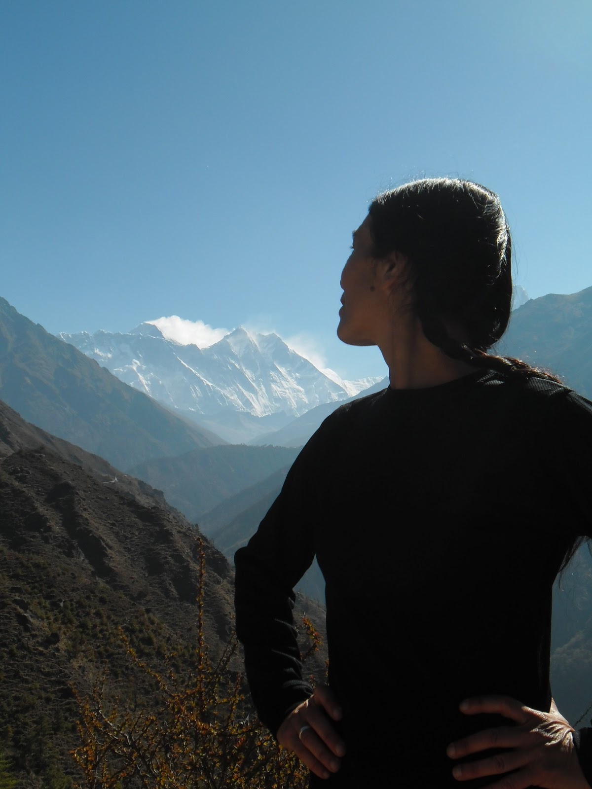 Hoy durante el camino nos acompaña el majestuoso Ama Dablan, qué estirpe de caballero, es como un mago gigante y noble, se deja ver sin timidez, erguido en toda su pureza alba. El Ama Dablan es hermoso, es uno de mis cerros preferidos, el Ama Dablan es tan bello. No me canso de mirarlo o de dejarlo que me mire y pose para todas mis fotos de esta tarde. Erguido y sin miedo. Admirable Ama Dablan, qué regalo de la naturaleza que no nos cobra nada para dejarlo ahí, a merced de nuestros ojos. Es un templo enorme. Una torre encaramada en medio del aire, y sin miedo.