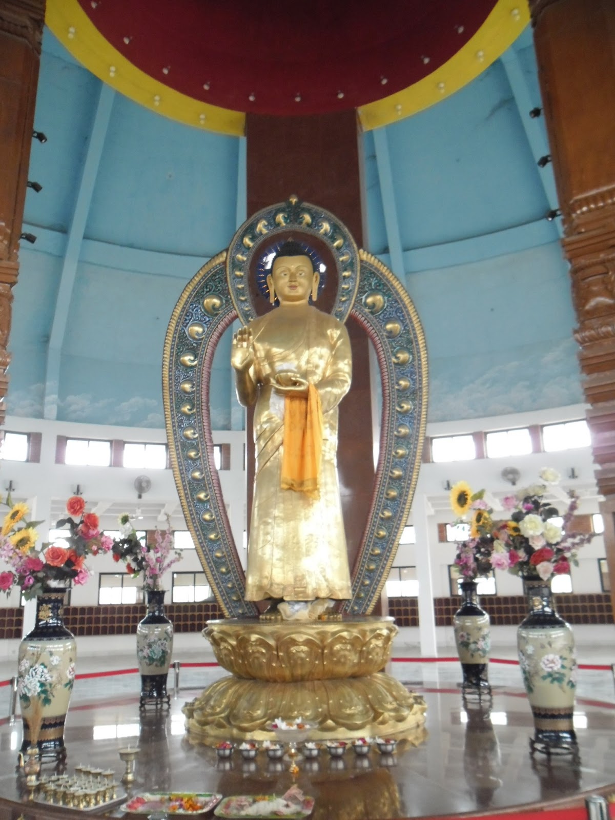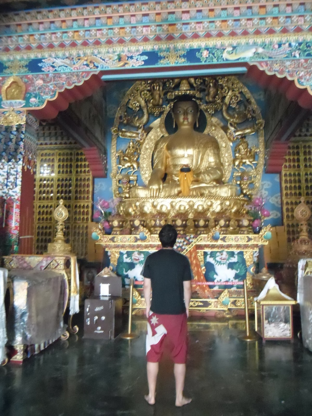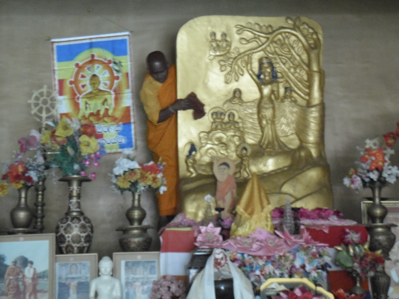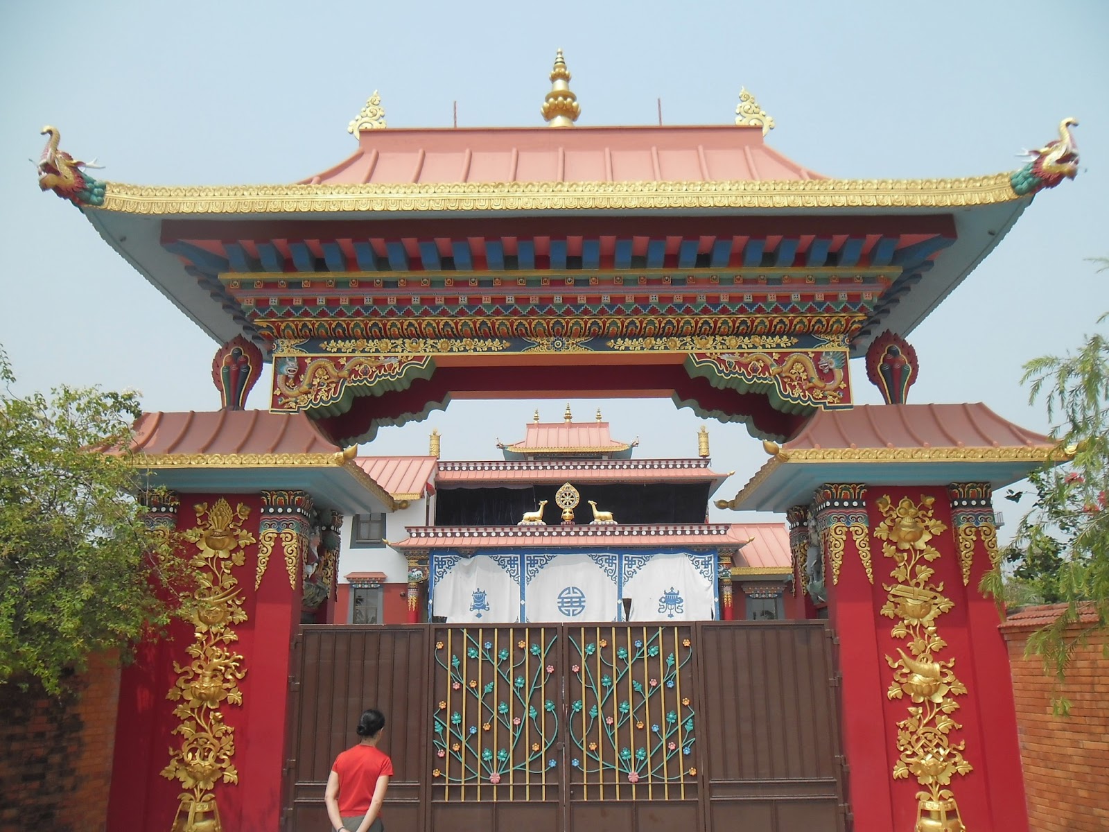 Hoy visitamos todos los monasterios y templos del recinto enorme donde se homenajea a Buda, en los alrededores del sitio real donde nació. Vimos templos, pagodas, monasterios, donados por diferentes países o grupos de gente. Todos muy grandilocuentes, fantásticos y caros. Dorados, de mármol, pintados con murales, con bajorrelieves y sobrerrelieves, de muchos colores, de diferentes estilos. Caminamos muchos kilómetros ahí adentro, con todo el calor, y nos acabamos de tomar una cerveza llamada San Miguel, creemos que de Filipinas, refrescante!! Yo que no tomaba más ni una gota de alcohol, estoy tan bien pero tan bien, que hasta un vaso de cerveza.