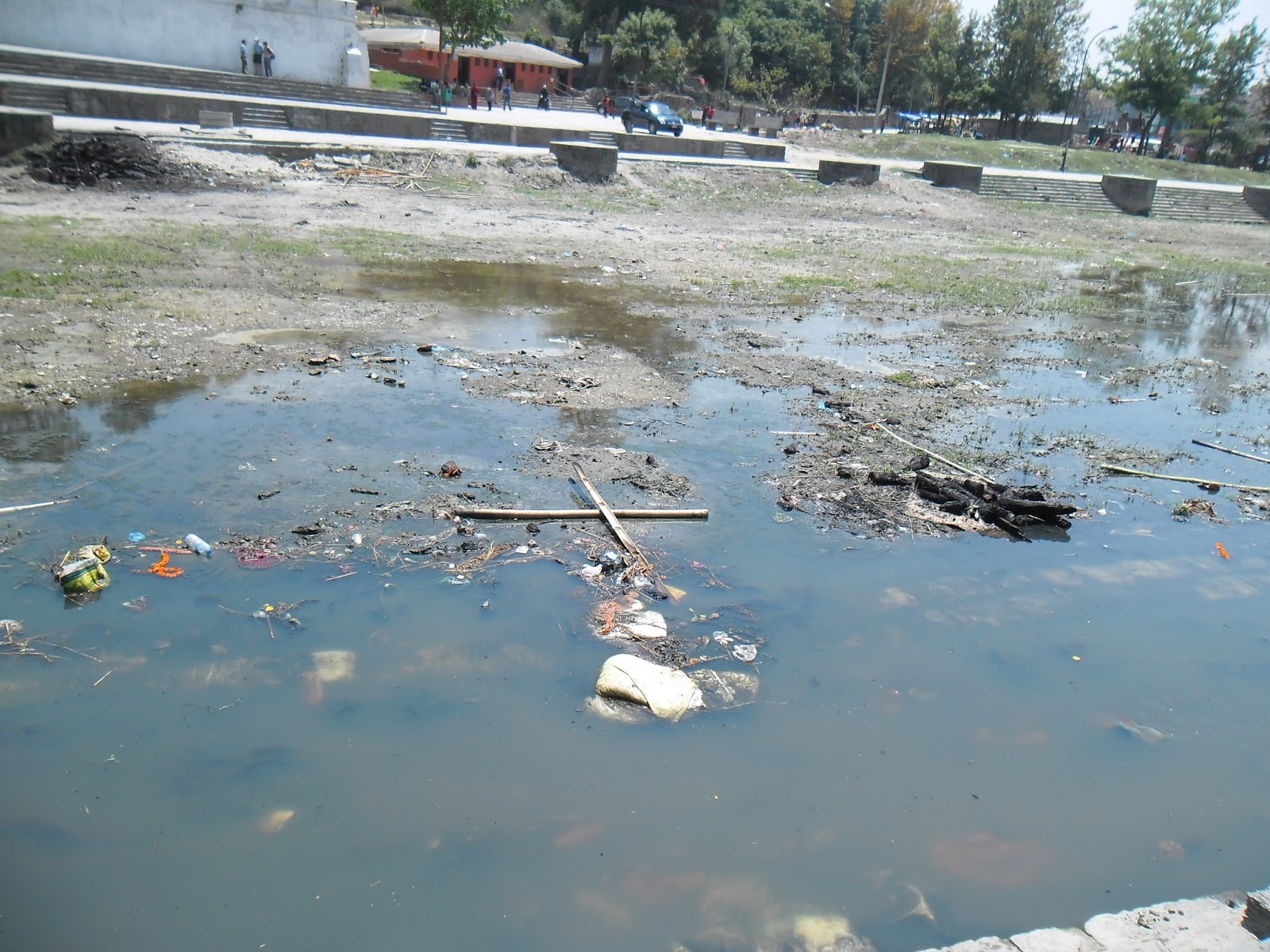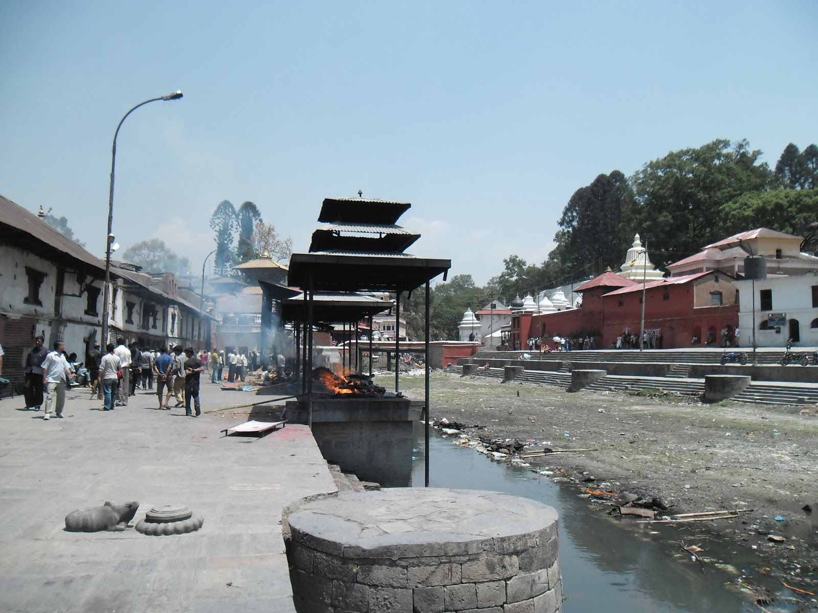 a quemar, y la mugre, flota en el río sagrado Bargmati, donde al mismo tiempo