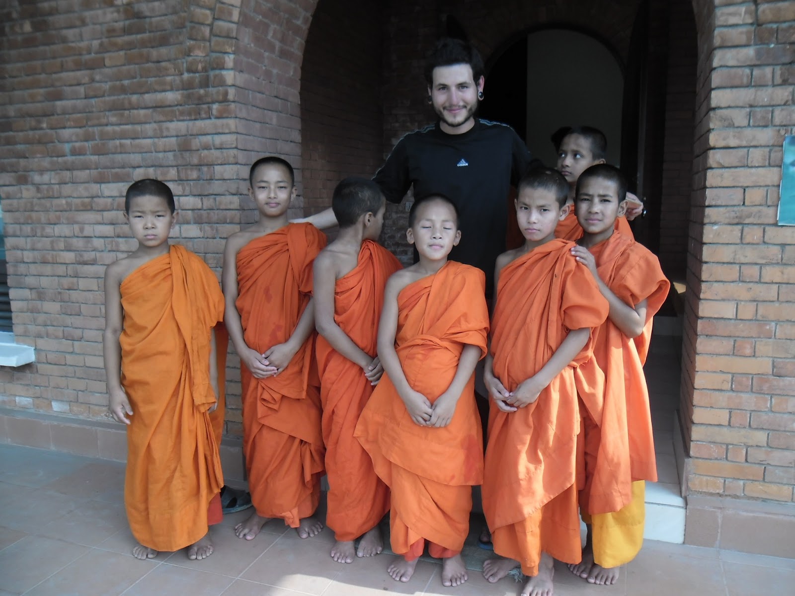 y meditación de los monjes vestidos de bordeaux y mostaza, pero en lugar de eso