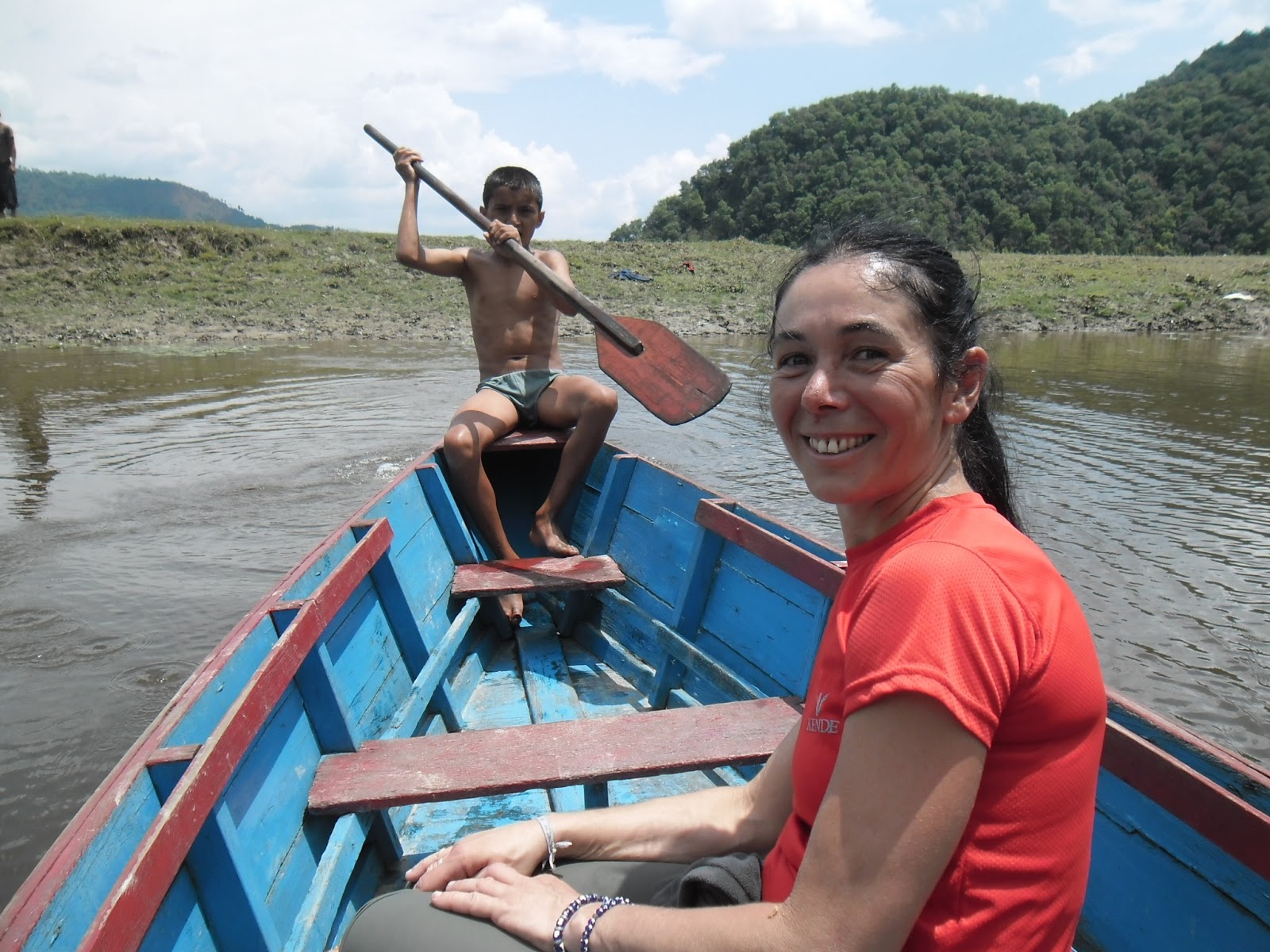peló la camiseta, nadó a la otra orilla y se trajo un botecito para cruzarnos.