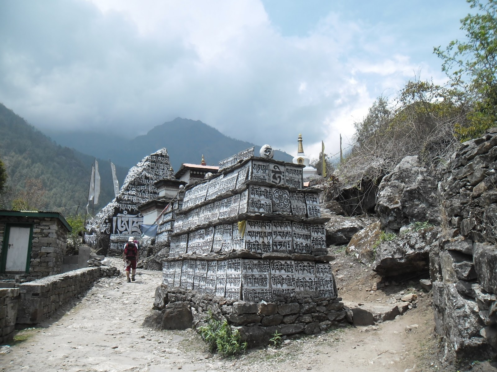 Llegamos a Dole, a 4200 metros de altura. Todo el camino, desde Namche, fue en subida, a puro trepping. Nos detuvimos a comer en Mong, pueblito donde nació un conocido y venerado Lama, el Lama Sange Dorje. Comimos unos momos, y chow mien, con unos mates.