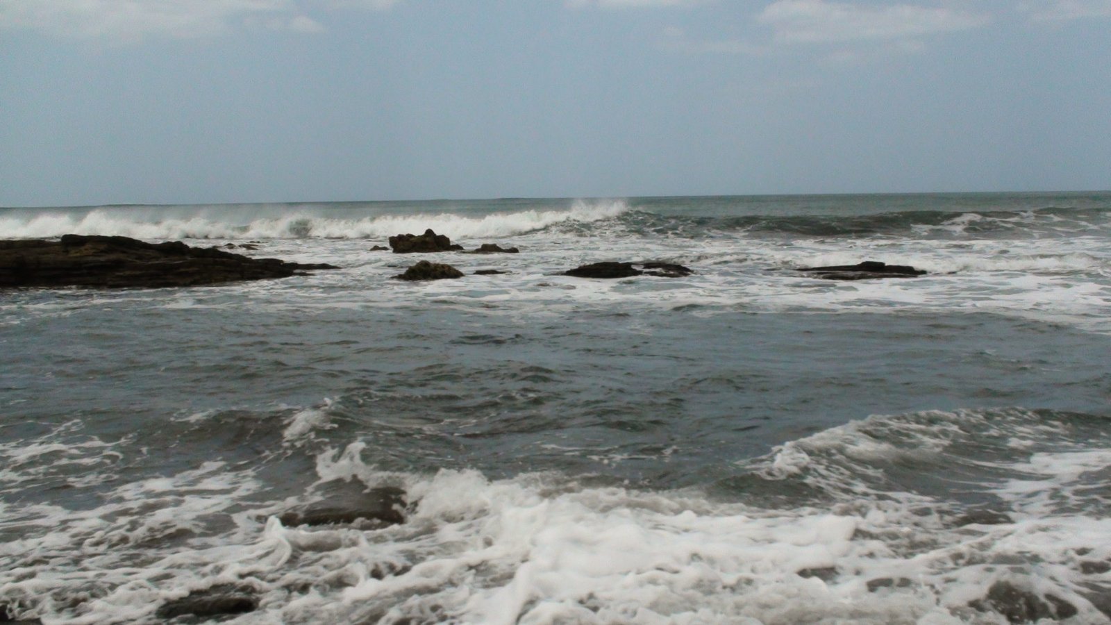 Un camino fácil. Tomamos la ruta que va a Managua, una ruta en buen estado y con pocas ondulaciones. En un empalme desviamos por el camino que va a Puerto Sandino. Es una ruta nueva, muy lisa y ahora sí con algunos desniveles, pero cómoda. Pasamos por una petrolera del ALBA, ondean juntas las banderas de Venezuela, y Cuba. Desde Puerto Sandino fuimos hasta El Velero, un sector amplio de playa diseñado por el FSLN para que los nicaragüenses puedan disfrutar del mar. Siguen las marejadas en toda la costa del Pacífico, desde Chile y hasta México, pero esta parte de Nicaragua no ha sido afectada. En la entrada al complejo de El Velero hay un guardia de seguridad, la entrada es libre y, aunque hay algunas casas cerca de la costa, el acceso es para todo el mundo. Hay una piscina natural que se llena con el agua del mar y cuando la marea baja, a eso de las 11 del mediodía, queda el piletón lleno entre las rocas y la gente va llegando a bañarse. Un buen lugar. Ahí se puede acampar. Hay un espacio entre árboles, lugar para fogón y suficiente leña. No vimos agua dulce o canilla. El lugar es agreste. No hay tiendas, las tiendas están en la entrada de la playa, a unos 500 metros.