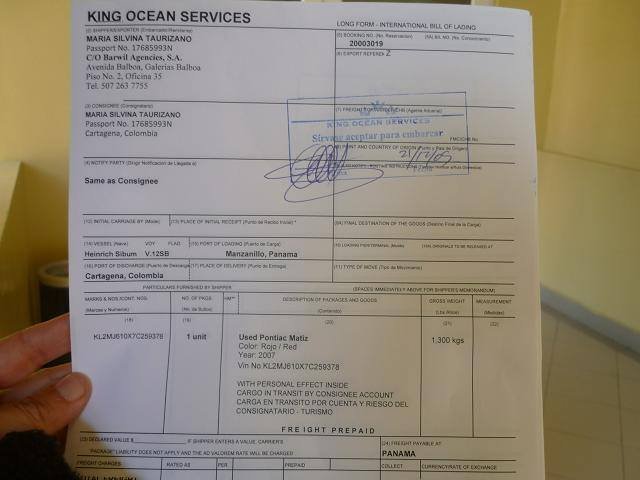 Después de muchos días de averiguaciones en Panamá -todo el mes de diciembre estuve dando vueltas con esto-, encontré una compañía naviera que se ajustaba a mi presupuesto. Me explicaron que podían trasladar a la autita en ro-ro y que eso era más barato que dentro de un contenedor. Yo debía llevarla y entregarla con la llave puesta en el Puerto Manzanillo, luego ellos la subirían a la cubierta de un barco que la llevaría hasta Cartagena de Indias, Colombia. La autita debía pasar el Darién por mar en un barco de carga, era la única manera, y yo, en avión o en lancha. O caminando.