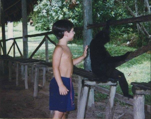 Nuestra primera experiencia cercana con monos, muchos monos y muy cercanos, la tuvimos cuando fuimos a visitar la laguna de Quistococha. Esta laguna está a unos veinte minutos de Iquitos. Fuimos en un auto grande, un Farlaine azul, una nave con ruedas que amortiguaba con destreza el peso de once tripulantes apiñados. Toda la familia, algunos de los del barrio, nosotros tres y varios chicos a upa. Armamos un picnic con ollas de comida que iban estibadas en los bordes del baúl. Había arroz con pollo, yuca, zanahorias, y plátanos guineos empanizados. Los habitantes naturales del lugar eran de nuestro tamaño y todos peludos.