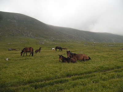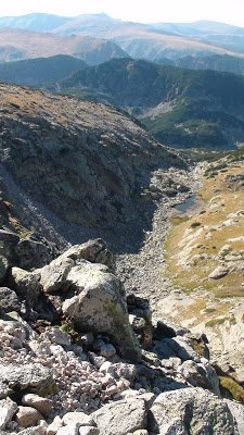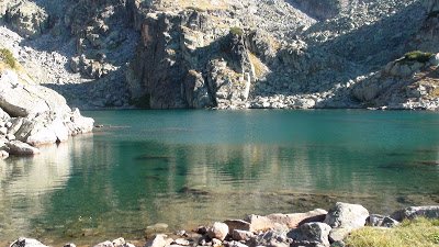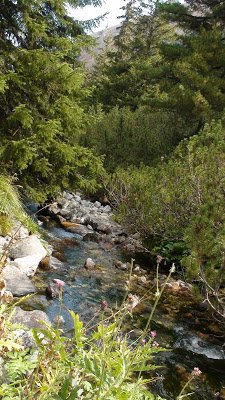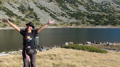 cruzar, y me preparé el mate. El agua que llevaba en el termo desde las 8 de la mañana, cuando había salido para participar de una clase de español con Mixaela, estaba fría. El mate, un asco. Pero en fin, me lo seguí tomando con calma. Me senté tranquila en una piedra. En eso veo a uno de los amables muchachos que vuelve agitado, en subida. Volvió, unos quince minutos de camino, pero volvió, para avisarme que el camino a Skakavitsa salía más abajo y había unas marcas en las piedras. Por las dudas que yo quisiera volver, pegó la vuelta, subió rápido para alcanzarme y avisarme. Yo ya había decidido según la corriente del arroyo, seguir a los lagos, pero cómo le iba a hacer al pobre amable muchacho. Encima que se volvió a avisarme. Así que decidí volver a cruzar el arroyo y volver yo también hacia Skakavitsa. Menos mal, porque el sendero era más hermoso. Puro