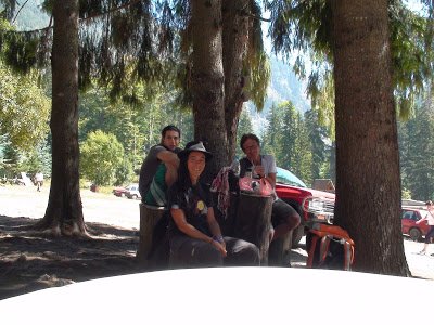 bosque de pinos, ideal para perderse y no reencontrarse jamás. Cada recodo entre los pinos es igual al otro. Dónde estoy? En el bosque, donde las sombras de la tarde que cae, engañan a los ojos, que además no ven muy bien. Prestar atención. Brújula y mapa. Volví a cruzar unos varios arroyitos y allá arriba, la vi. La hizha. Relajada llegué hasta aquí. Una hizha enorme, y muy linda, que como todas estas fueron construidas e inauguradas por el comunismo que auspiciaba los deportes al aire libre. Esta hizha fue la primera. Hay unos cuadros antiguos. Lo que no había, hoy 20 de julio, era lugar. Sin cama. Pero me ofrecieron un sofá y es tremendamente cómodo. Gratis. Empecé a darle al diente a las galletitas, me tomé unos mates calientes, y la típica sopa de después del camino, sin meat balls por esta vez.