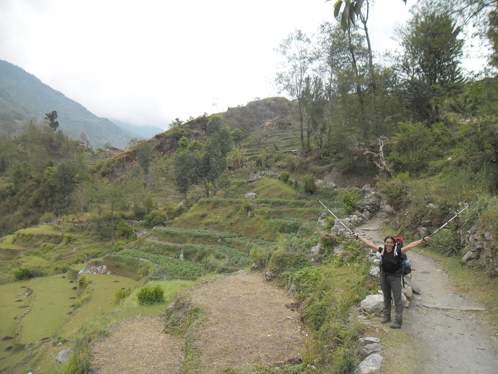 De ahí caminamos subiendo, trepping en ojotas, por aldeas donde nos dimos