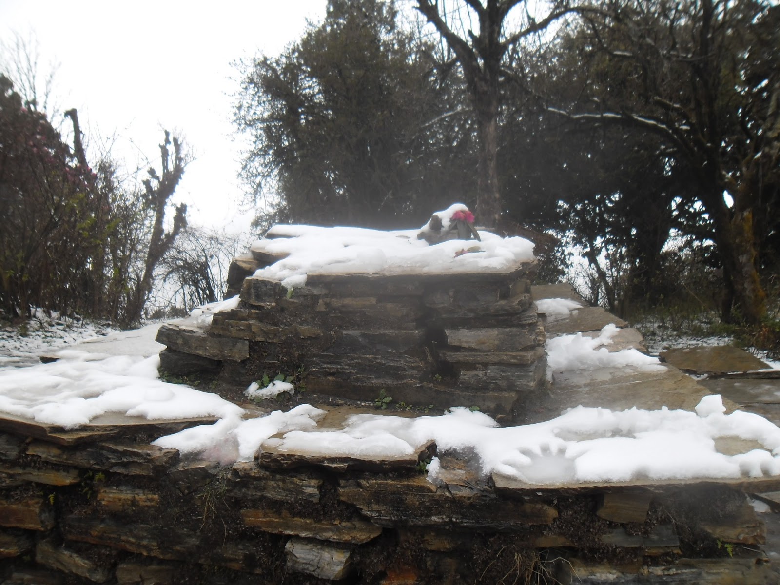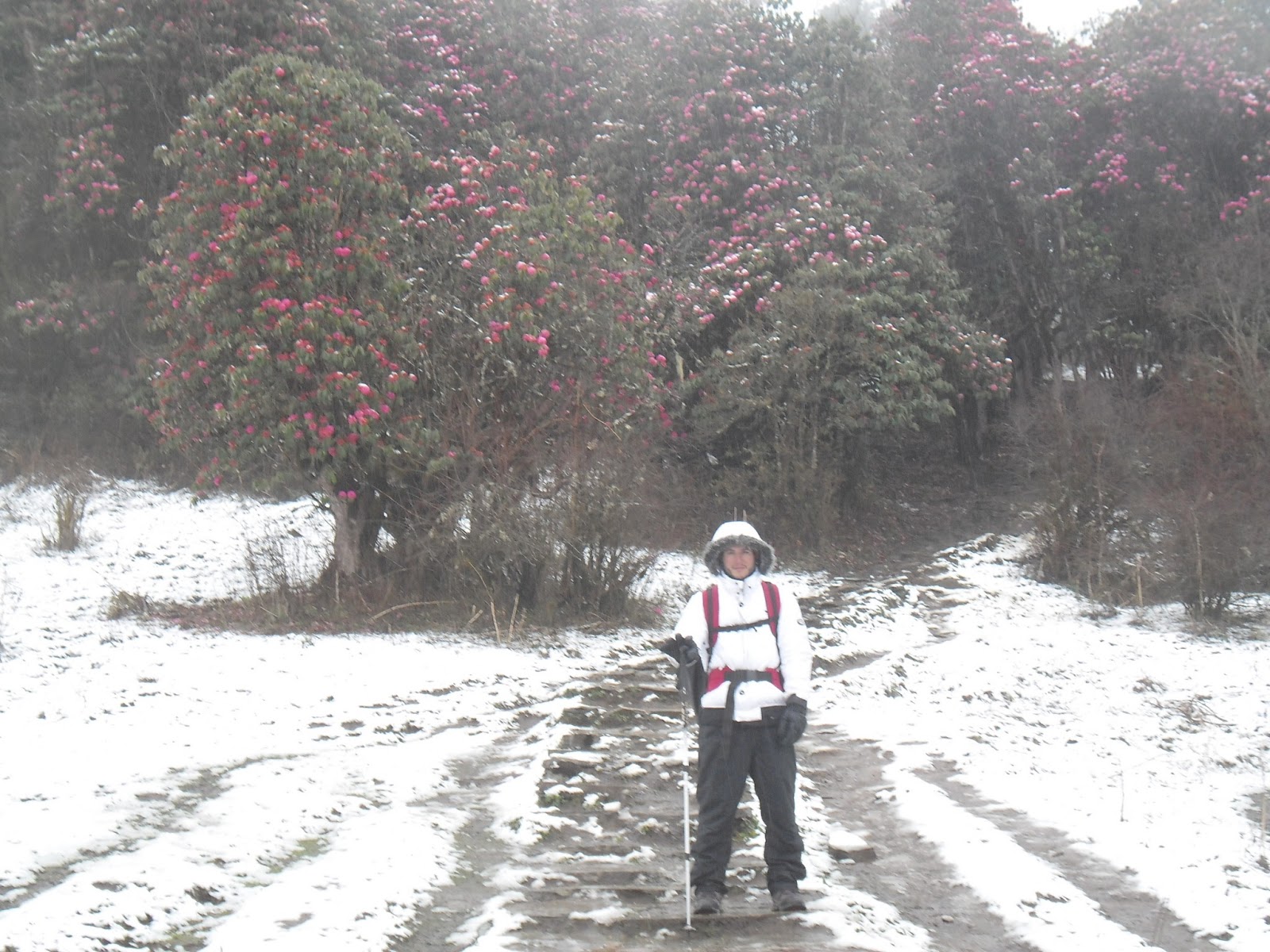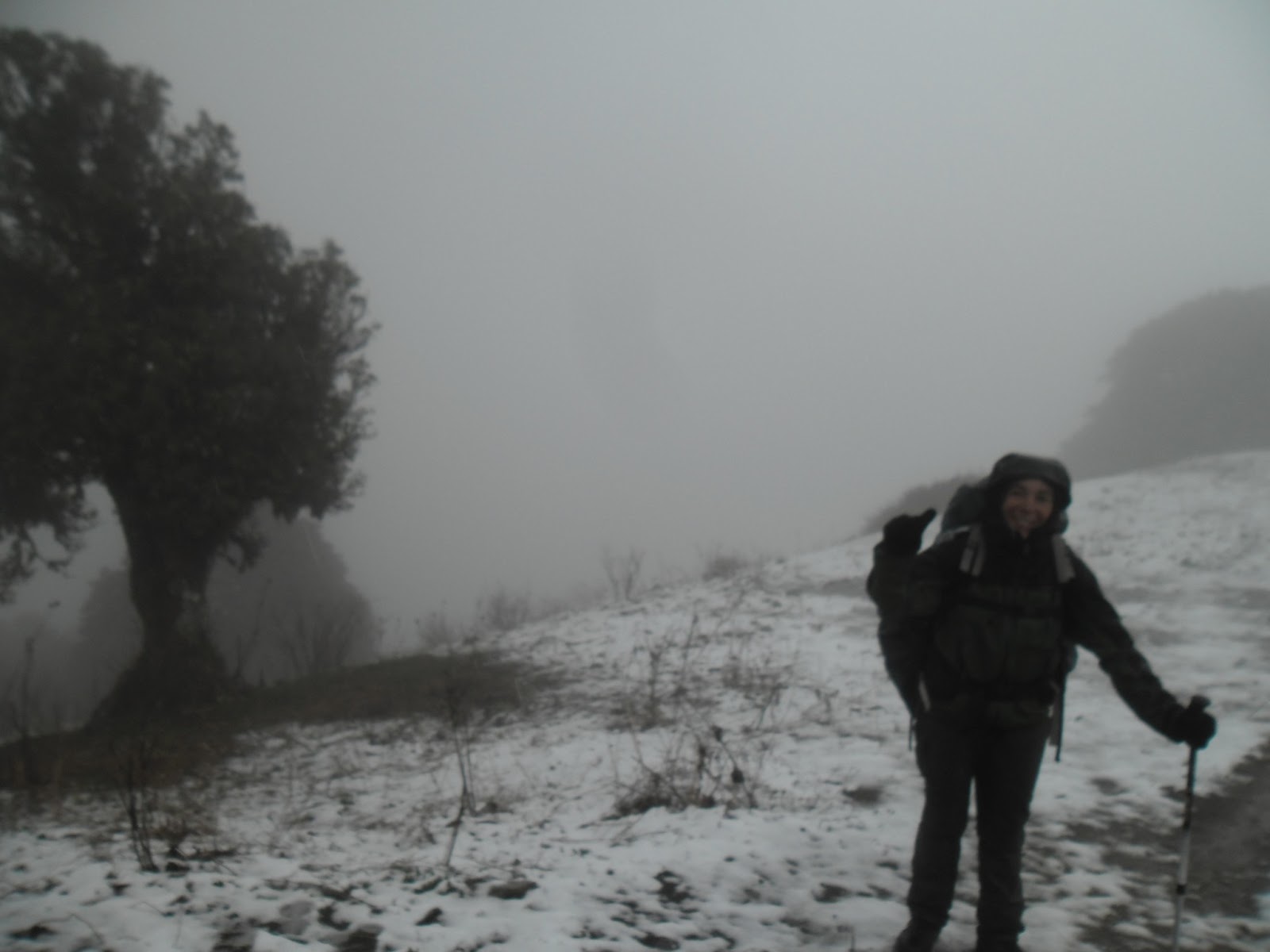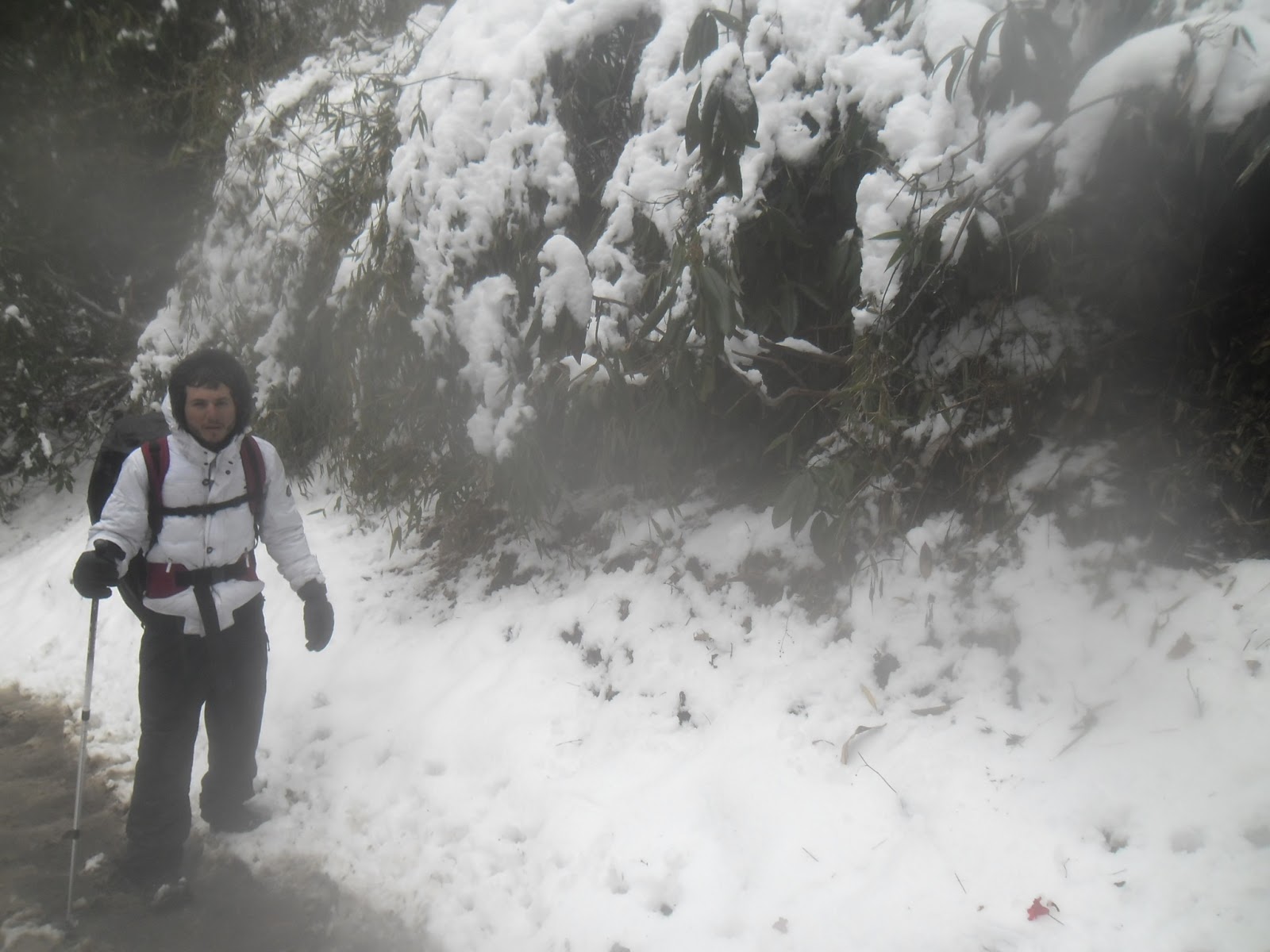 Toda la noche escuché llover. Sin parar. Diluviaba. Entre sueños me preguntaba qué nos depararía el destino o la mañana, después de haber subido, sólo subido hasta Ghorepani, tener que encarar un día debajo de la lluvia. Cuando al fin amaneció vi que no sólo llovía sino que nevaba y había nevado. Luego de un día que había comenzado con ambiente tropical y en el que habíamos ascendodo el desnivel de 1800 metros, deberíamos sacar todos los abrigos y el impermeable para encarar un camino bajo la lluvia, bajo la nieve y sobre senderos nevados, embarrados, inundados. Así fue todo el trayecto desde Ghorepani a Tadapani. Empezamosa subir y luego de más o menos 45 minutos de subida, el sendero principal viraba a la derecha, así que lo tomamos. Error. Tomar a la derecha nos llevó en un rodeo otra vez a Ghorepani. Regresamos al punto de salida. Pensamos que era mala pata, qué sal, qué mala suerte. Habíamos caminado una hora al pedo. Pero algo providencial y extraño pasó. Una chica bajaba y nos pusimos a charlar con ella. Es de Bulgaria y se llema Teodora, y cuando le dijimos que nos encantó Bulgaria y que yo quiero ir a trabajar para allá, se apuró a escribir su mail bajo la lluvia para que estemos en contacto y dijo que me ayudará a ver por dónde puedo encontrar un trabajo.