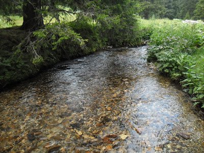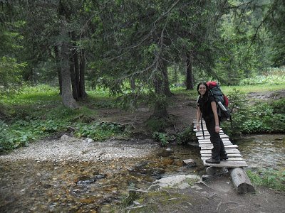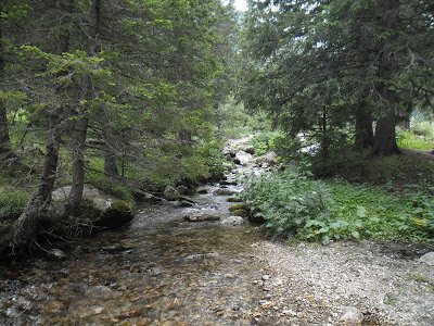 cruzar, y me preparé el mate. El agua que llevaba en el termo desde las 8 de la mañana, cuando había salido para participar de una clase de español con Mixaela, estaba fría. El mate, un asco. Pero en fin, me lo seguí tomando con calma. Me senté tranquila en una piedra. En eso veo a uno de los amables muchachos que vuelve agitado, en subida. Volvió, unos quince minutos de camino, pero volvió, para avisarme que el camino a Skakavitsa salía más abajo y había unas marcas en las piedras. Por las dudas que yo quisiera volver, pegó la vuelta, subió rápido para alcanzarme y avisarme. Yo ya había decidido según la corriente del arroyo, seguir a los lagos, pero cómo le iba a hacer al pobre amable muchacho. Encima que se volvió a avisarme. Así que decidí volver a cruzar el arroyo y volver yo también hacia Skakavitsa. Menos mal, porque el sendero era más hermoso. Puro