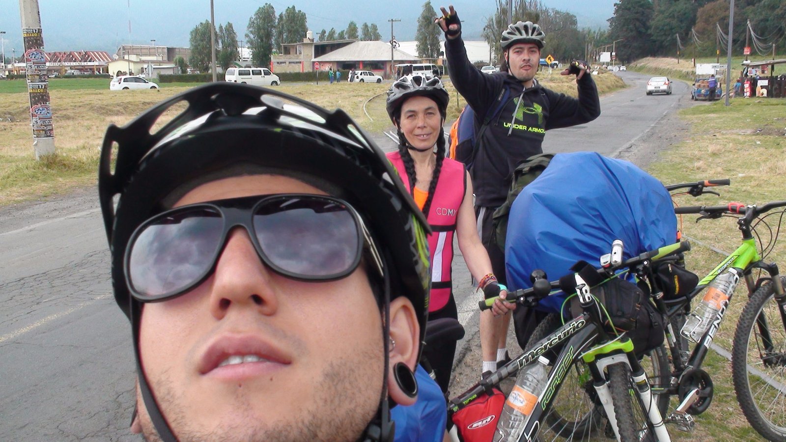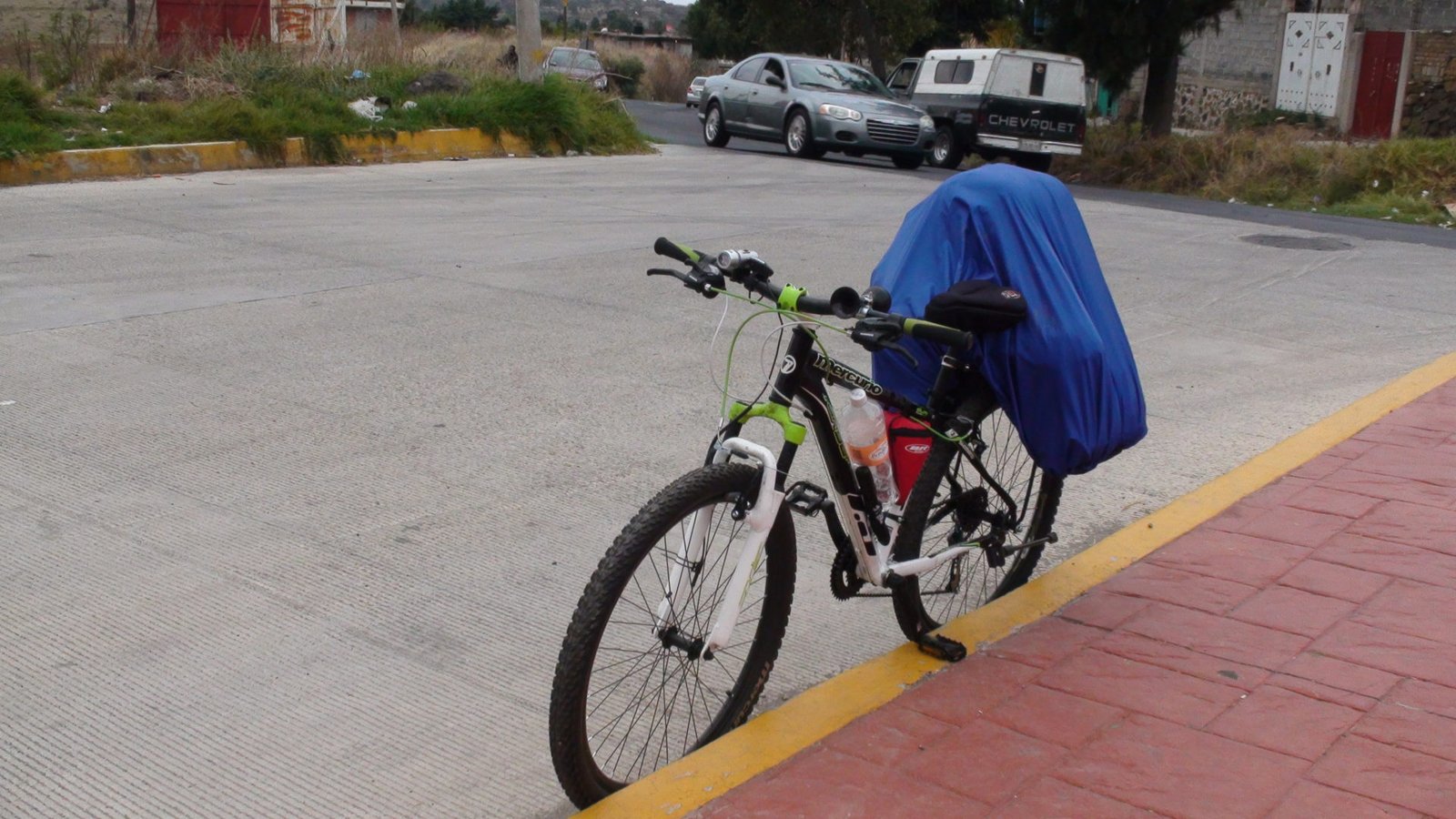 El primer escollo con que nos encontramos fue el de amarrar los bártulos. Armar la carga el primer día nos tomó más de dos horas. Empezamos a las 6 de la mañana. Habíamos dormido poco, quién podía pegar un ojo esa noche previa. Estuvimos probando, cambiando la mochila y la carpa de lugar, desarmando las alforjas, sacando una cosa de acá para ponerla allá. Era un lío. Atamos con sogas plásticas comunes. Cada uno trataba de descubrir la mejor estrategia para ajustar la carga con nudos infalibles, sin embargo, apenas habíamos avanzado uno o dos kilómetros, en plena Avenida División del Norte de México Distrito Federal, el bulto de Martín ya se había caído por completo a un costado. Tuvimos que hacer un alto y acomodar otra vez. Para entonces yo ya había parado a poner la cadena. Se me zafó a dos cuadras de la casa y por primera vez en mi vida. Ahí descubrí que no era tan sencillo bajar de la bici y sostenerla con el peso de la carga. Bajar sin revolear la pierna por encima del asiento como de costumbre porque la carga es alta y se atraviesa. Flexionar la pierna a través del caño para subir y para bajar y encontrar un lugar donde poder sostener la bici sin que el peso la tumbe.