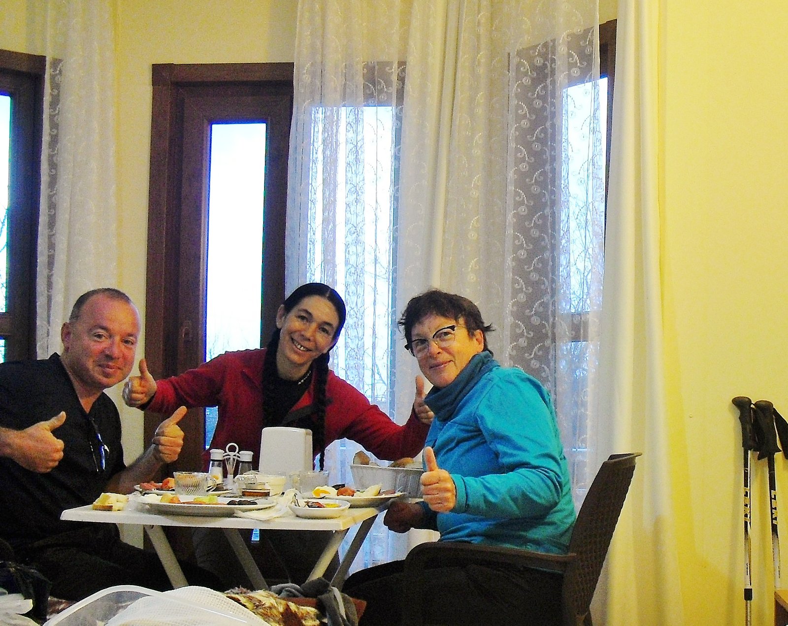 Era 17 de enero. Invierno. Temporada baja en la región. Muchos hoteles están cerrados. Caminamos hasta el New Golden, pasando por delante del Sultán y el Golden lo encontramos en estado deplorable de abandono. Tapado de polvo y ojarasca. Volvimos sobre nuestros pasos hacia Sultán y nos quedamos allí. El precio fue de 40 liras por persona con el desayuno. Aparentemente también estaba cerrado, pero nos habilitaron una cabaña. Está lindo. Ha mejorado. Ya no son sólo las casitas pequeñas de piedra que había visto medio en ruinas en el año 2011. Ahora hay cabañas más lindas, jardín, más pintoresco a pesar de la baja temporada. Nos quedaba bien pernoctar allí para arrancar desde cerca. En mitad de la noche, cuando ya estábamos durmiendo bajo una lluvia torrencial al abrigo de la cabaña, escuchamos entre los redobles del chaparrón en el techo, la voz de Zeki, otro de los caminantes, turco, que llegaba desde Kusadasi para unirse a la travesía.