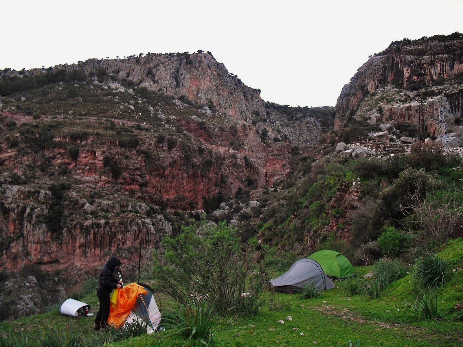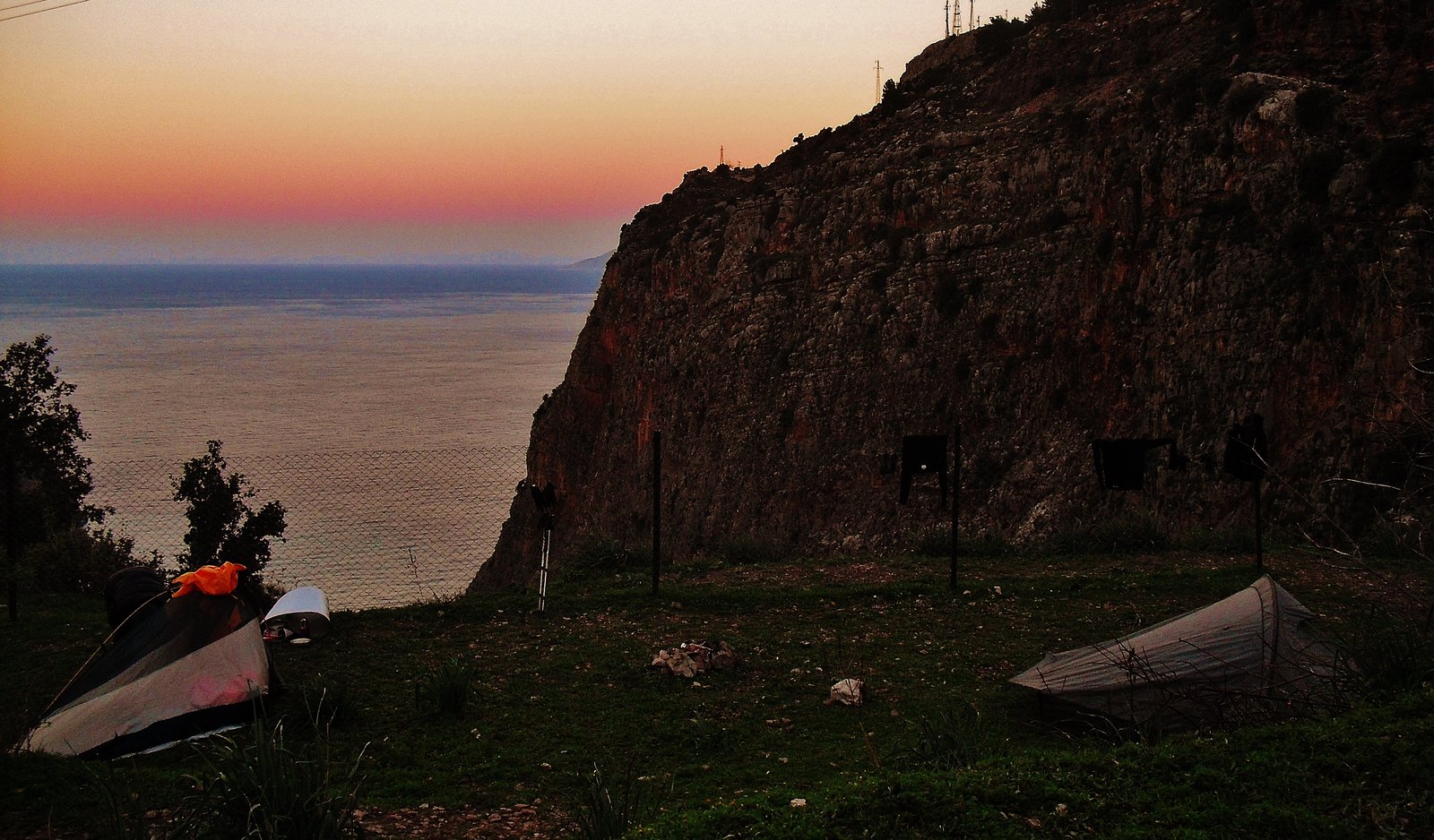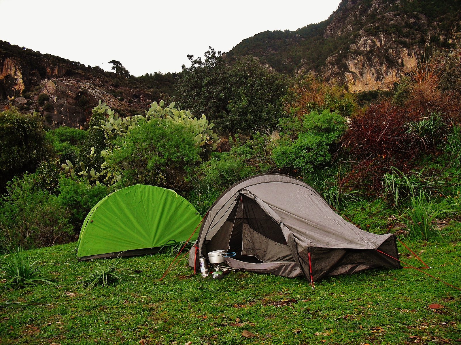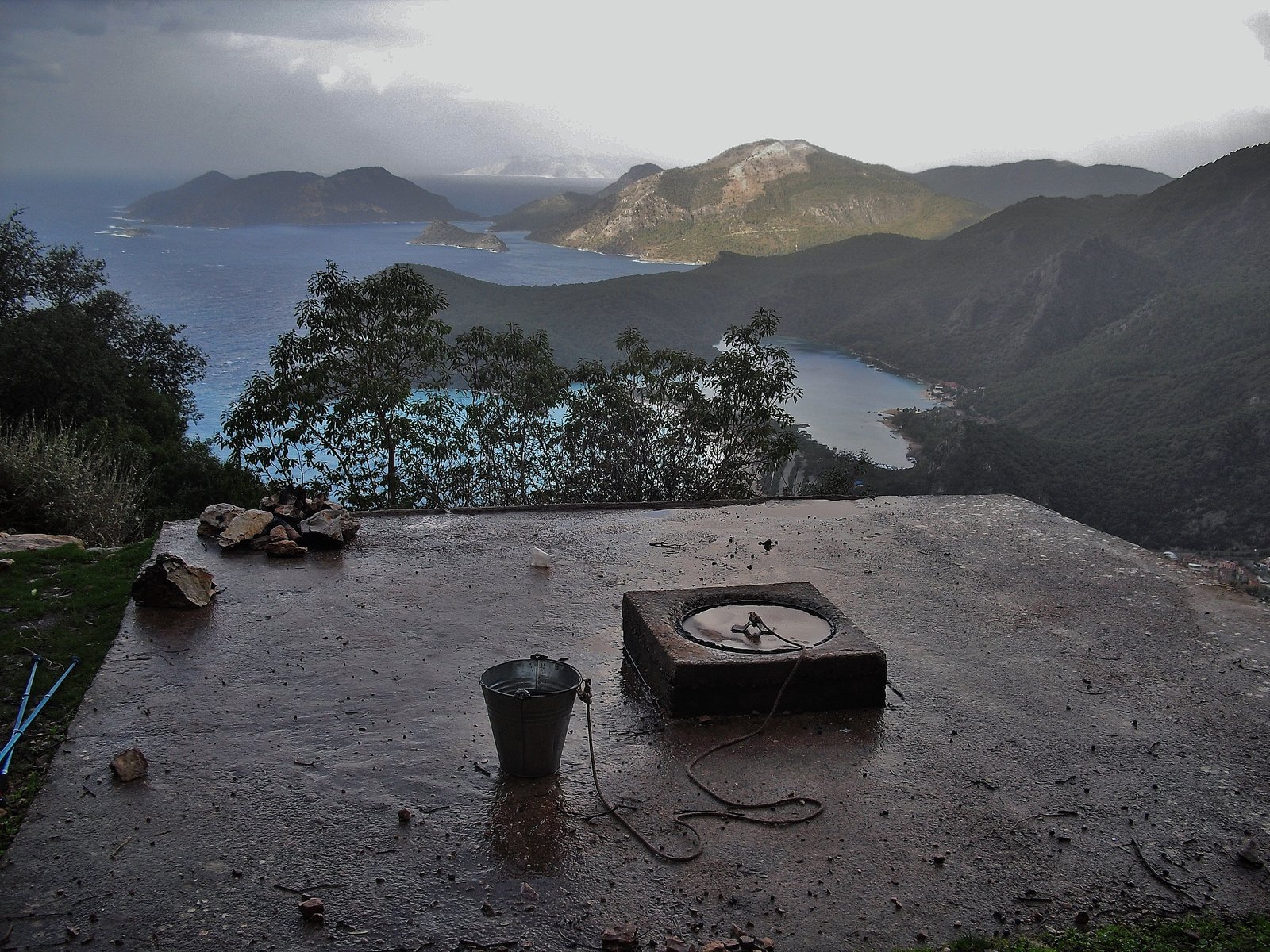 En Faralya, George house, como es baja temporada, no nos quiso recibir. Fue bastante mala onda. Hay pensiones nuevas. Nosotros encontramos el mejor lugar para acampar. Mejor que George House. Un balcón gratuito hacia el Valle de las Mariposas. Esta donde hay un mirador. Hay un cartel que indica el lugar, seyir tepesi. Allí hay un pastito muy acorde para acampar, confortable. Estaba húmedo, claro, con tanta lluvia! pero bueno… Enfrente hay unas casitas y de allí se puede sacar agua. Las canillas están afuera de las casas y las personas son amables y no tienen nada de problema. Al contrario.