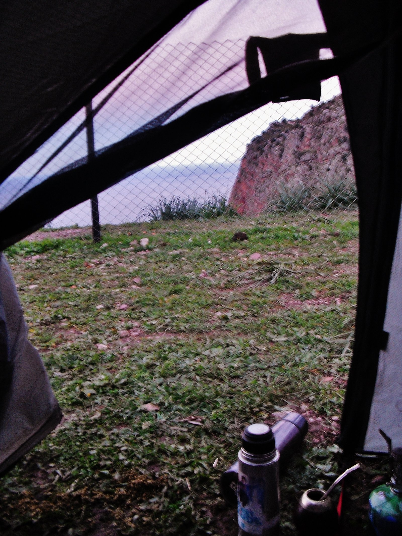 Amaneció ultra nublado, frío, húmedo, pero apostamos todo a la ilusión de largar la caminata. Nos cubrimos con los impermeables, cubrimos las mochilas, y zarpamos tras el típico desayuno con pepino, tomate, huevo y aceitunas.