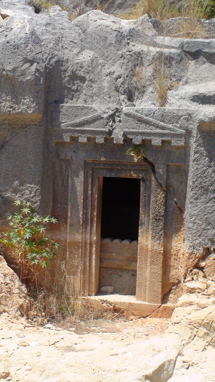 Llegué a Üçagiz y encaré la ruta hacia Sura. En varios puntos, la ruta lycia se toca o concuerda con la ruta para autos. La carretera. Caminar al sol por carretera, con este calor, y el peso, no es lindo. Antes de llegar a Sura, vi allá abajo, el puerto de Andriake, donde tenía pensado acampar. Alrededor, el campo, lleno de invernaderos. Miré la bajada, miré la ruta, y no bajé a Andriake, seguí caminando y como dijo Farid cuando llegó a Roma, me caí de culo. Frente a mis ojos se desplegaba como un abanico a lo largo y a lo ancho de la montaña, la ciudad de Myra, Myrr, en lycio.