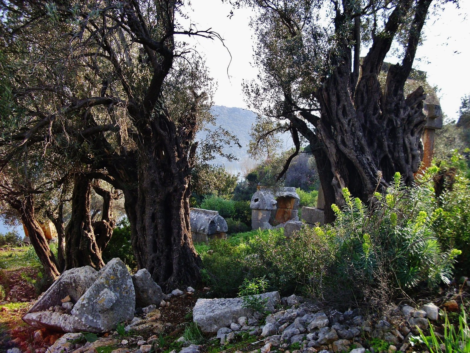 Descansamos un momento en la plaza junto a la ribera del mar. Üçagiz es un enclave veraniego, con muelles y botes. Las pensiones, en su mayoría están cerradas. Algunos nos ofrecen buen precio y lugar, pero es temprano, el clima es bueno, así que decidimos continuar hacia Simena. Salir de Üçagiz es por una calle de pavimento, detrás de la calle que bordea la costa, paralela a esta. Es prácticamente la única calle que hay y que sube. Es caluroso, no hay sombra. Apenas empezamos a subir vemos algunas tumbas casi domésticas, mimetizadas con los jardines de algunas casas y sus flores. No demoramos mucho hasta Simena, menos de una hora. Antes de llegar pasamos por un astillero repleto de barcos que seguramente estarán aprontándose y acicalándose para el próximo verano. En reposo por ahora. En Simena no hay nadie. Sólo algunos pobladores. Si Üçagiz es netamente veraniega, Simena aún más. El pueblo no es básicamente un pueblo ordinario sino muelles y casas de madera adosadas a los muelles, encaramadas en el acantilado. No hay calles, sólo caminitos o escaleras. La gente se maneja en botes, lanchas, barcos. Todos los servicios se cierran en baja temporada pero siempre queda alguien para comprar cena o desayunos. Mercado no hay, en Üçagiz sí.