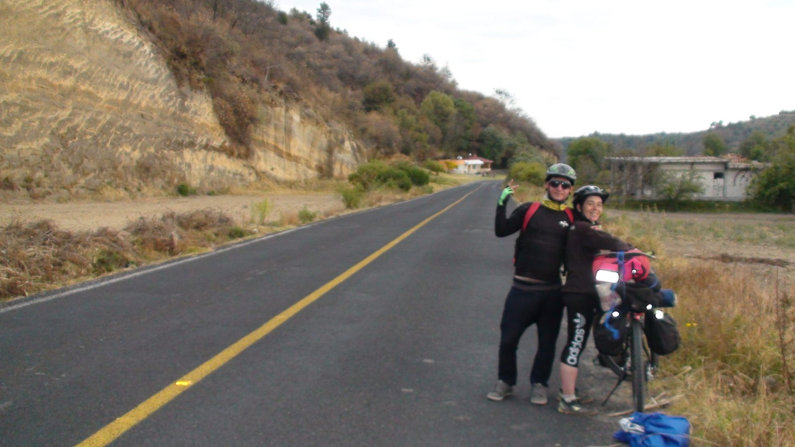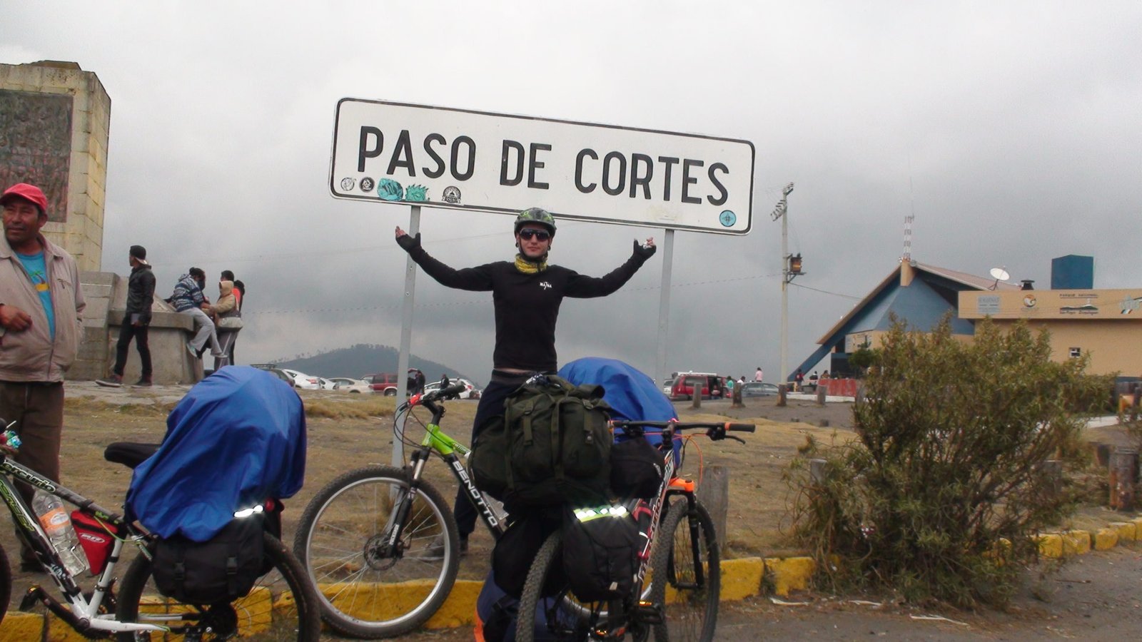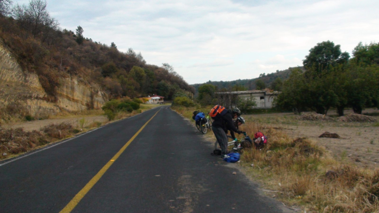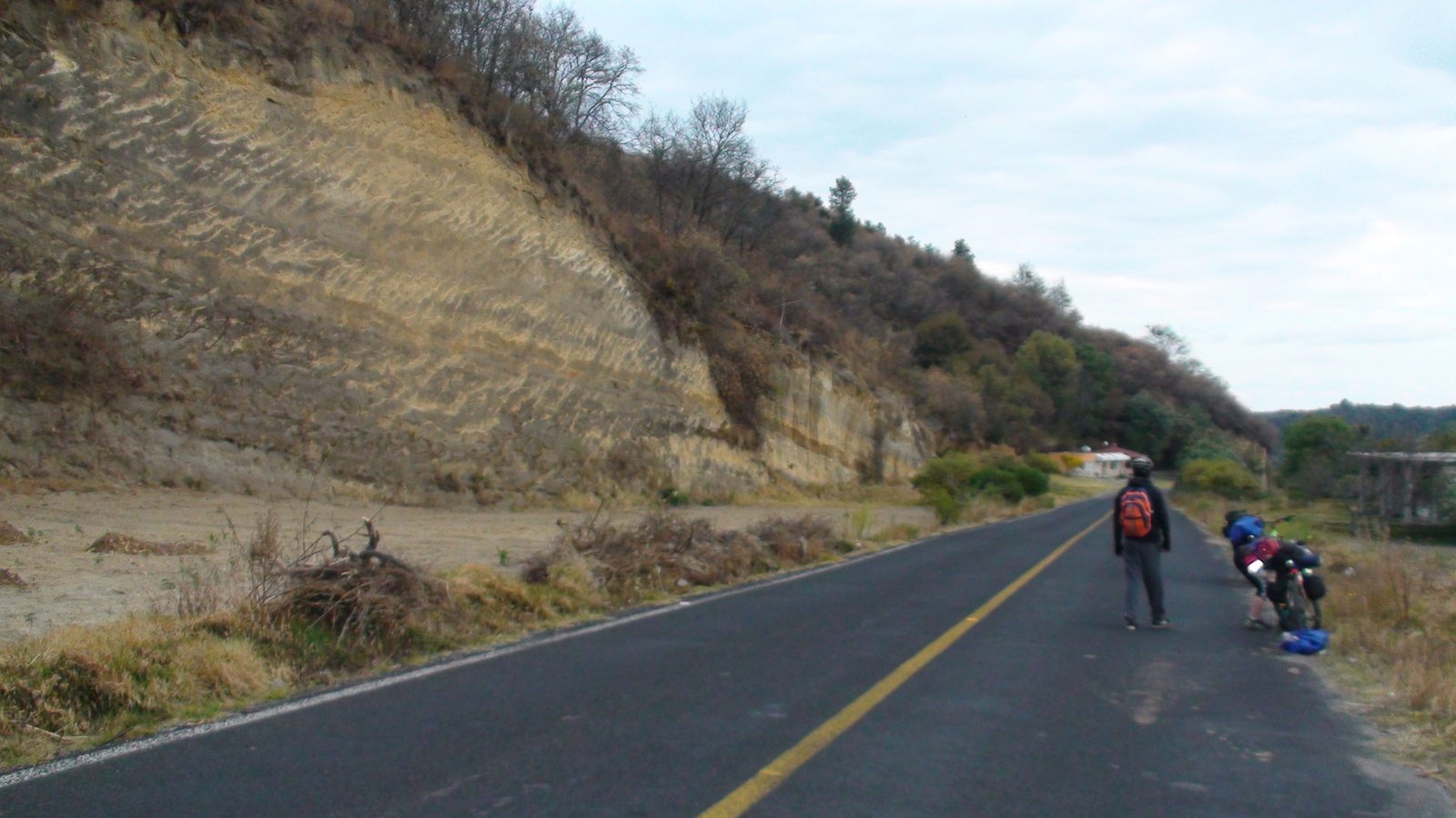 Continúa la subida constante hacia el Paso de Cortés. Es terrible. Muy difícil de poder remontar con bicicleta de montaña y carga. Miraba el manillar de cambios de velocidades y deseaba que la cuenta regresiva tuviera más numeritos, más para eliminar resistencia y subir más rápido. O subir, simplemente subir pedaleando. No hubo caso. Tuvimos que bajarnos de las bicis en buena parte de la subida y empujar. En mi caso y hasta ese momento, segundo día de viaje sin entrenamiento ciclista, caminar empujando resultaba más fácil y más rápido que tratar de pedalear. El camino es precioso. Puro bosque de pinos y ese olor fresco de la resina. El bosque nos alivia con su sombra y nos da respiro. Paramos a descansar y a tomar agua muchas veces. La altura también se hace sentir. Estamos por encima de los 3000 metros, tirando pa’elante y empujando. Nos llevan nuestras piernas pero también el deseo y la curiosidad de pasar entre los dos volcanes. Hay otras rutas para viajar desde México a Cholula, pero quién podría desistir de esta oportunidad cuando ya vio que existe. Quién puede bordear la osadía e irse por la tangente casi con disimulo. Xalepa ta kalá, la antigua sentencia griega, lo bueno cuesta, lo bello es difícil, por eso, y porque nos corroe la adrenalina de la aventura, el sabor de la conquista, vamos por la montaña. Fue durísimo pero hermoso. Y llegamos. Llegamos andando por nuestros propios medios. La tenacidad y la fuerza interior pudieron más que el cansancio, lento pero avanza, como el caracol avanza, avanza y llegamos, Paso de Cortés. Y luego de unas quesadillas, tacos y tlacollos, vino el sabor más delicioso, la bajada. Fue gratificante. Placentero. Alucinante. Primero es un camino de tierra, un poco arenoso, una bajada imparable e impagable. Los bultos volvían a desmoronarse aunque intentáramos esquivar los pozos y las piedras. Paramos a acomodar; por lo demás, no necesitábamos parar, la bajada de la tarde fue la devolución al sacrificio de la mañana.