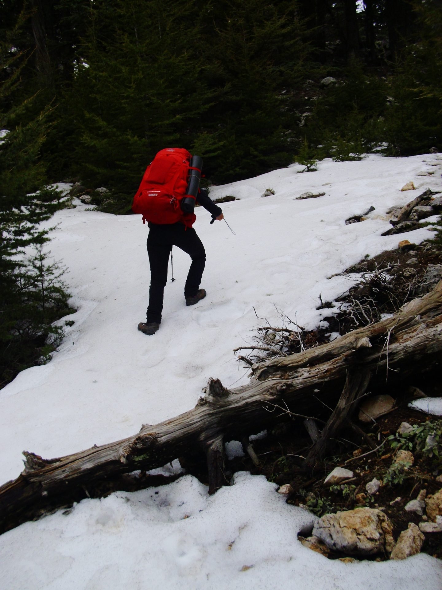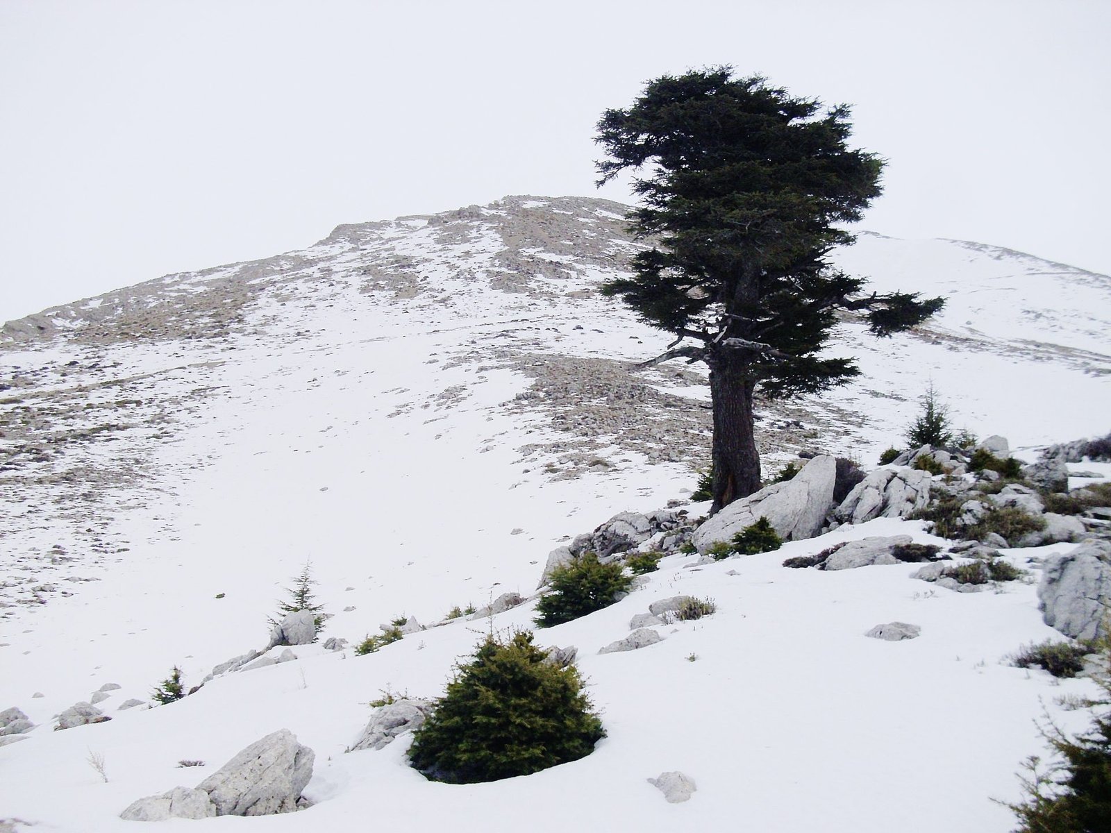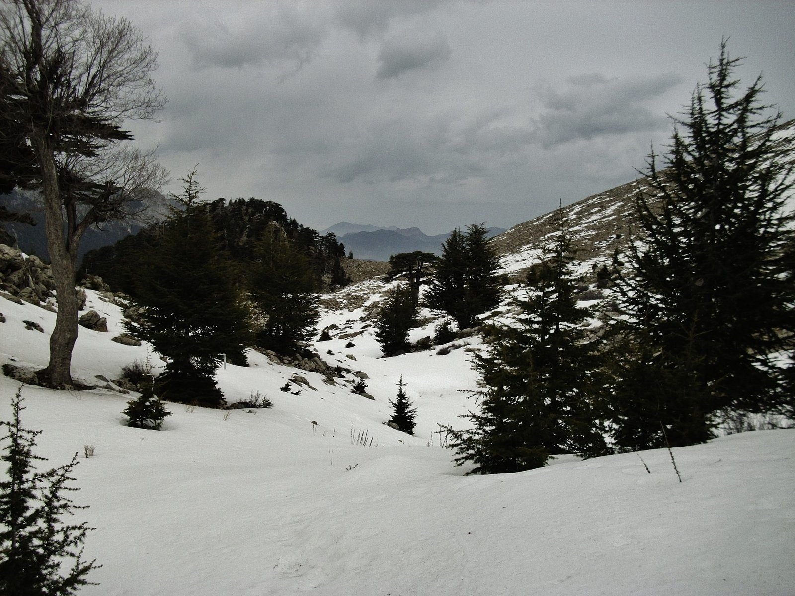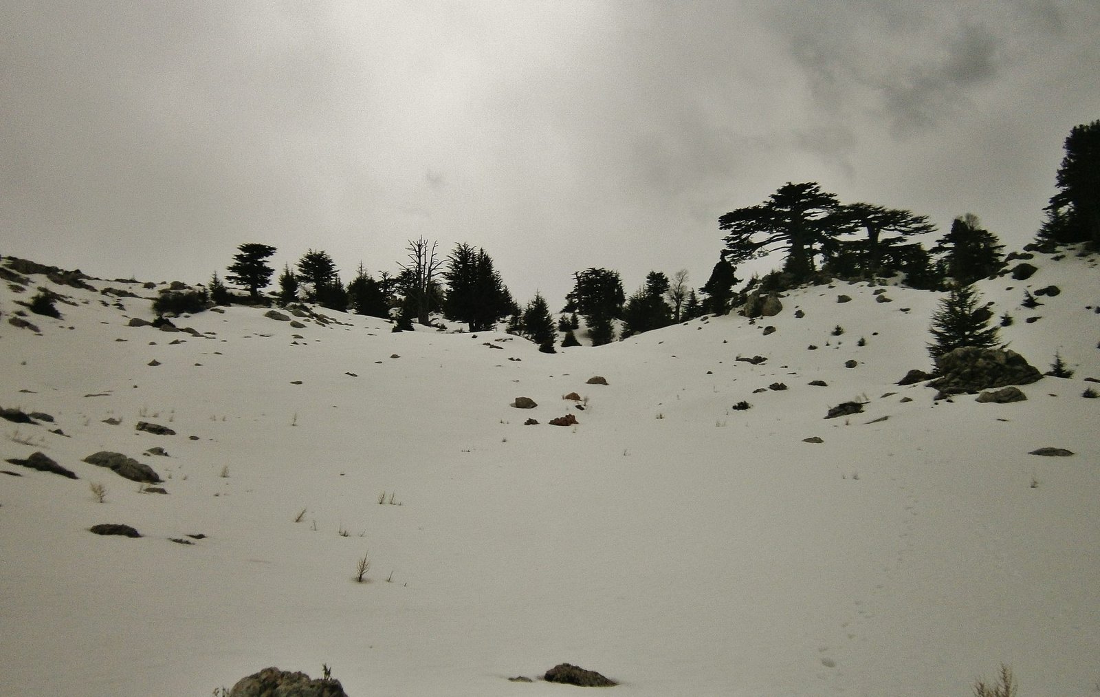 Nos recontraperdimos después de haber sorteado con mucha cautela toda la cumbre y la precumbre donde la nieve nos tomaba por sorpresa enterrándonos hasta las rodillas. No queríamos arriesgar ni un paso sin ver antes la marca siguiente, a veces no quedaba otra que arriesgar. No se veía nada y no quedaba otra que avanzar a tientas e ir buscando lentamente para no alejarnos mucho de nuestra última pisada certera. Todo era blanco y hermoso. Tan blanco que encandila. Llegamos a un camino ancho al que subimos por inercia trepando y poniendo mucho esfuerzo en los bastones a modo de piquetas. Este camino ancho también estaba cubierto de nieve. Otra vez aparecen los carteles que señalan otros treks y las marcas con rayas rojas y amarillas. No vimos más marcas de Lycia. La última la vimos en un arbolito parado en medio de una yayla cubierta de nieve. Luego de este árbol, siguiendo el camino ancho que creemos no es la dirección correcta, hay un cartel que señala a Tekirova, a la costa, otro que iba a una Yayla pero no era a Kuzdere y otro que fue el que seguimos que señalaba Gedelme. En esta parte, la del árbol con la última marca y una yayla ahora cubierta con un manto de nieve, hay un par de construcciones sencillas, quizás de pastores. No había nadie.
