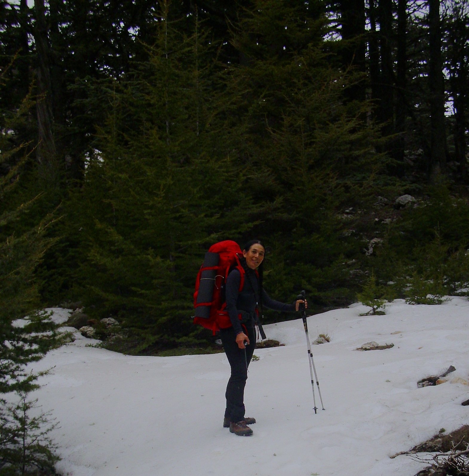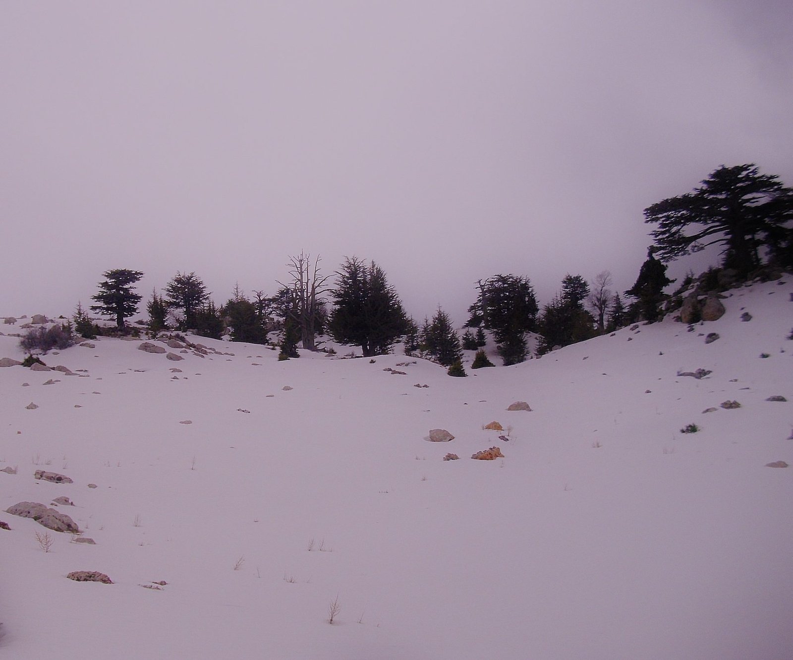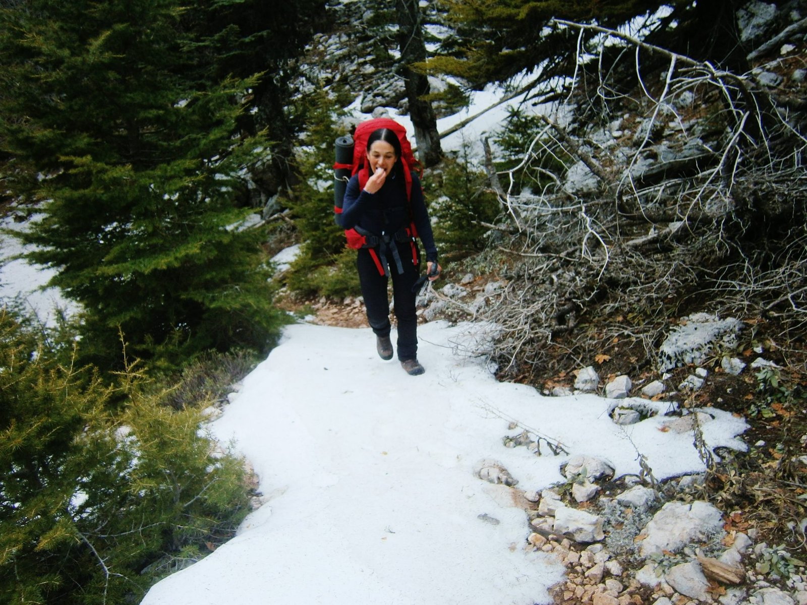 Célebre Tahtali daği . Esta vez no vamos por la costa. Vamos por las montañas. Hay que cruzar la altura de este Monte Olimpos legendario y enorme. Del lado de Beycik se veía imponente pero sin nieve. Sólo algunos manchones. Sin embargo a medida que nos acercábamos al paso la nieve crecía en extensión y espesor. En la cumbre y durante varios kilómetros y consecuentes horas después de la cumbre no nos quedó más remedio, santo remedio y bendición, que caminar por la nieve. Para mí caminar por la nieve es una adicción, un vicio consagrado pero claro, se pierden las marcas, no conocemos esas montañas, desconocíamos por completo o casi por completo nuestra dirección. Era complicado orientarse correctamente ante tal panorama. Nuestras perspectivas de éxito estaban por debajo de lo nulo.