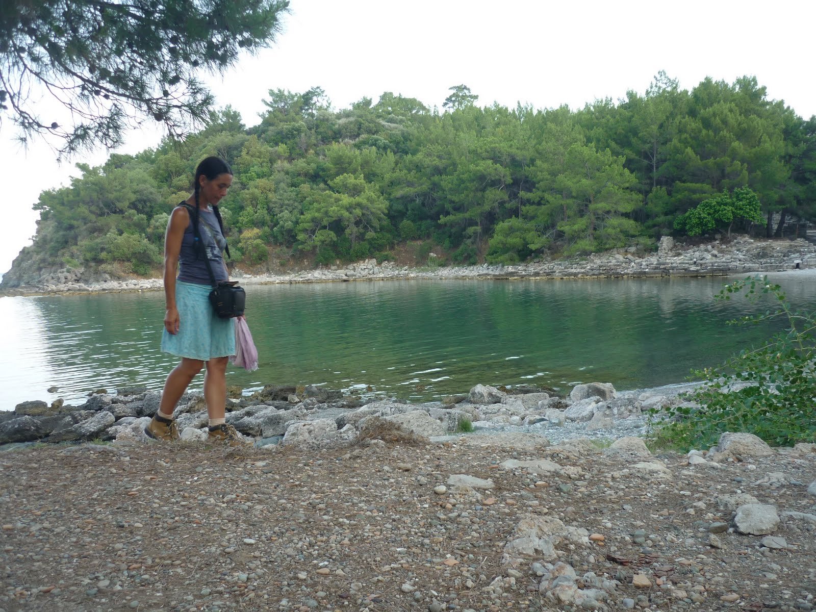 Esta mañana, luego de juntar nuestros bártulos, las dos jóvenes alemanas, Andrea y Micki, y yo, tomamos un minibus hasta la carretera principal que va a Antalya y desde ahí otro minibus hasta el cruce de la carretera principal con Tekirova. Caminamos hacia el centro de Tekirova, y luego, siguiendo unas pocas marcas de la ruta Lycia, y preguntando, caminamos hasta un camping que se encuentra a mitad de camino entre la ciudad de Tekirova -moderna, pequeña, y turística- y la antigua ciudad de Phaselis.