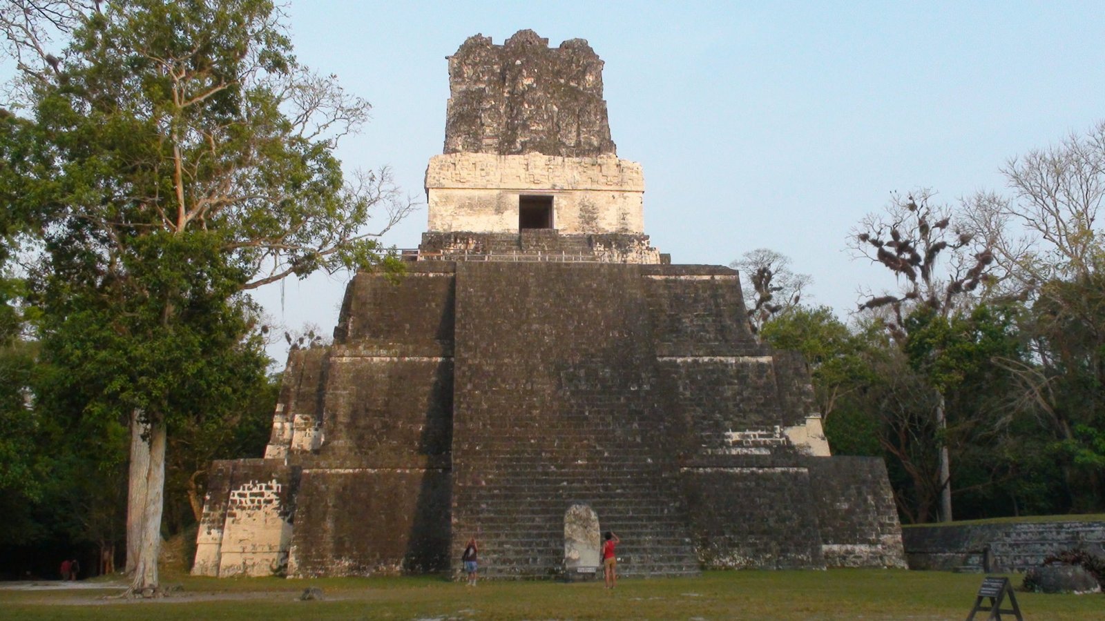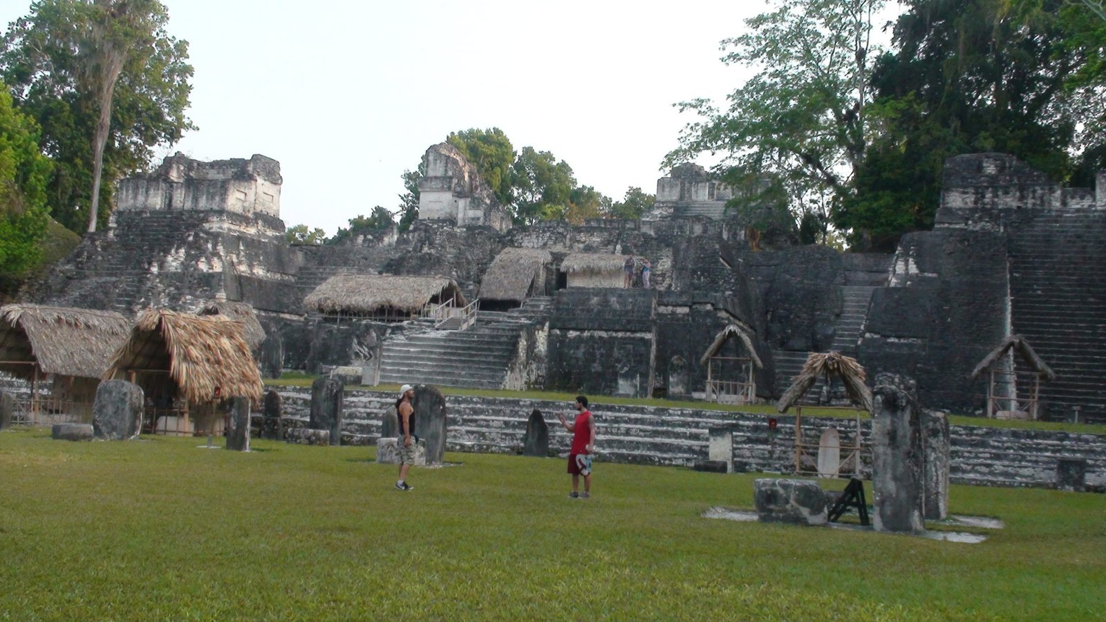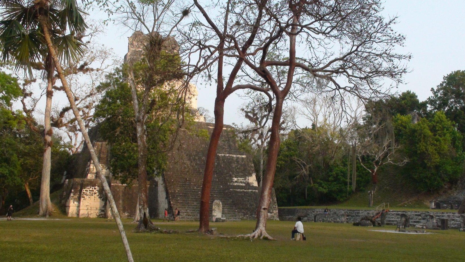 Toda la noche retumbaron los cimientos de Tikal. Desde la espesura, brotaban los alaridos feroces de los monos insomnes. Tikal, la ciudad de las voces. Dormimos con los mayas, en su propia casa. No viajamos solamente de un lugar a otro, también viajamos en el tiempo. Despertar en este lugar y poder llegar en pocos minutos a la Gran Plaza de Tikal, nos traslada a lo primigenio. En medio de la Gran Plaza, delante de la imponente verticalidad del Gran Jaguar, el Templo I, el más importante en la celebración de rituales, abrazando con la mirada su devenir del inframundo a lo celestial. En la altura del dintel las luces del amanecer revelan las reminiscencias de un jaguar tallado en la piedra. Ya no se permite subir a este Templo I ni al Templo II o de las Máscaras que fl anquea el campo de juego de pelota. No porque alberguen el misterio de una lápida dilapidaria de la historia de la humanidad, sino por el desgaste de la piedra en su pendiente temeraria. Sin embargo el sólo hecho de encontrarnos minúsculos en en el centro de la Gran Plaza es sobrecogedor.