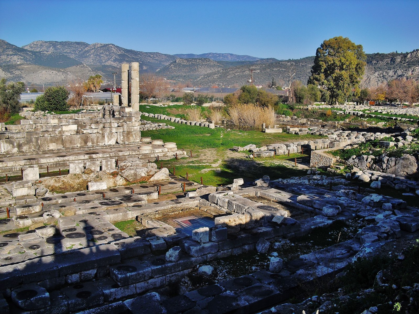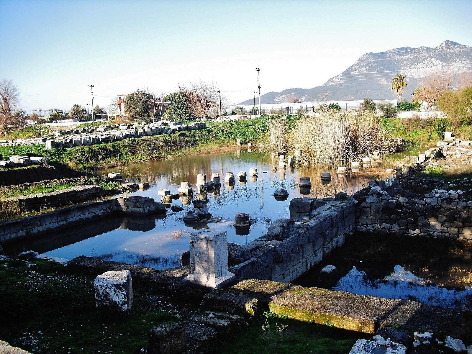 Seguimos entonces por la carretera rumbo a Letoon. Llegamos a Karadere, una inundación pero de invernáculos. Nos acompañarán buena parte del recorrido lycio. Turquía enmicada. Plastificada de invernaderos. Es impresionante y horrible pero quizás necesario para el progreso y bien vivir de estas buenas gentes. Los invernaderos recortan la imagen idílica de la montaña y el mar. Quiebran. Le cortan un pedazo a la belleza y la emparchan con plástico. Se hace sentir el calor a pesar de ser invierno. Tanto plástico!