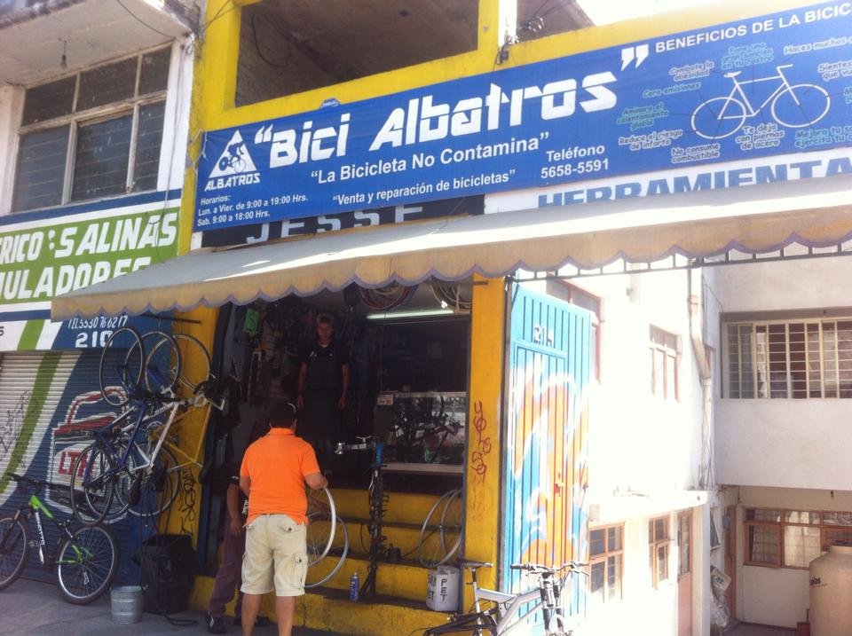 Dos días antes de le fecha prevista, hicimos un servicio completo a las bicicletas. Fuimos a la Bicicletería Albatros, a la vuelta del departamentito de Martín, por Delfín Madrigal y Escuinapa. Sus dueños, Juvenal Illescas y Arturo Illescas, nos atendieron con entusiasmo y nos regalaron consejos y una cajita con parches y herramientas. Juvenal auguró con una sonrisa un buen desempeño de la bicicleta italiana de Martín. Yo esperaba mi diagnóstico junto al cordón de la vereda y apoyaba la ansiedad en el cuadro demasiado alto de la mía. Juvenal me miró y no dijo nada. Cerró la boca y alargó un dudoso mmmm.