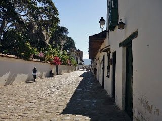 Valle de Leyva es lo más pintoresco que he visto en Colombia, es un pueblo de mentira con gente de enserio. Un pueblo donde me gustaría sentarme en una mecedora a tejer en lana cruda, detrás de un ventanal con malvones, sin que se me ocurran esas inquietudes constantes, de como sigo cantando con la canción, dejar la casa y el sillón, pero, la madre vive hasta que muera el sol y hay que quemar el cielo si es preciso, por cualquier hombre del mundo. Por eso me niego a quedarme en este pueblo blanco, bajo un cielo que a fuerza de no ver nunca el mar se olvidó de llorar y en cuyas callejas de polvo y piedra por no pasar ni pasó la guerra, sólo el olvido y YO, como ustedes escucharán, larlalalá! sigo cantando y andando mientras canto y así será, hasta la victoria.