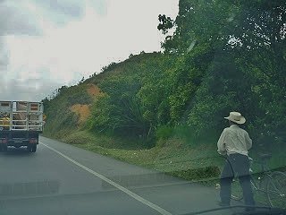 Esta mañana tomé la carretera de Pamplona a Bucaramanga, la ciudad de Maritza, compañera del camarada Fernando Morón. La ruta que une Pamplona con Bucaramanga y luego Pamplona hasta San Gil, es típico camino serrano. Curvas y más curvas. No hay opciones. Acá ni Mahoma vino a la montaña ni la montaña se fue a Mahoma. La montaña está ahí, firme e inconmovible, dura como su misma piedra. A veces la ruta se vuelve tan angosta, que en algunas curvas, cuando un camión me enfrentaba, yo me agachaba y me hacía chiquitita -más chiquitita- adentro de la burbuja, para que el camión amenazante no me aplaste. Como no hay opción, por esta ruta, pasa todo el tráfico necesario hacia Bogotá de norte a sur y viceversa. Es concurrida y lenta. No se puede ir prácticamente a más de 60 km por hora, por un lado por la secuencia de curvas, por otro, porque uno queda chupado atrás de un camión de carga y no es posible rebasar.