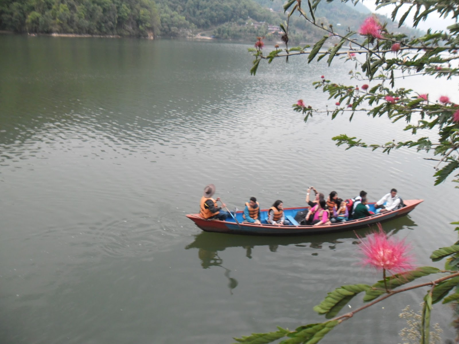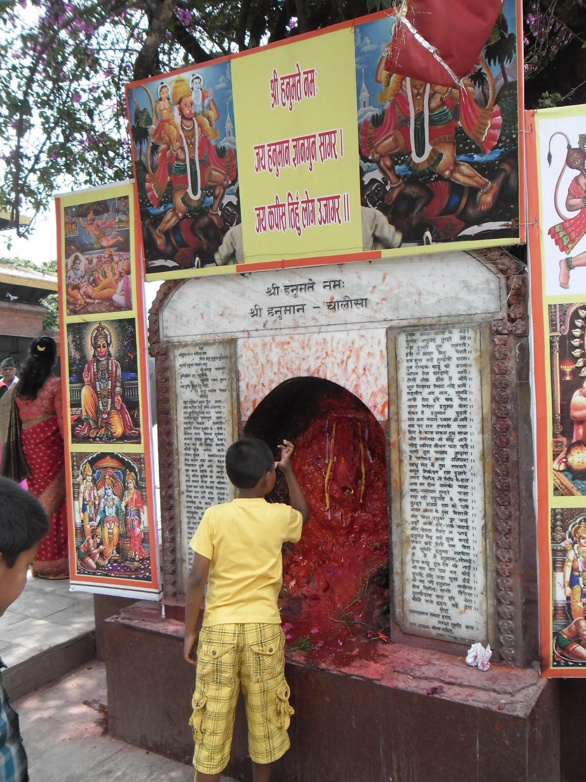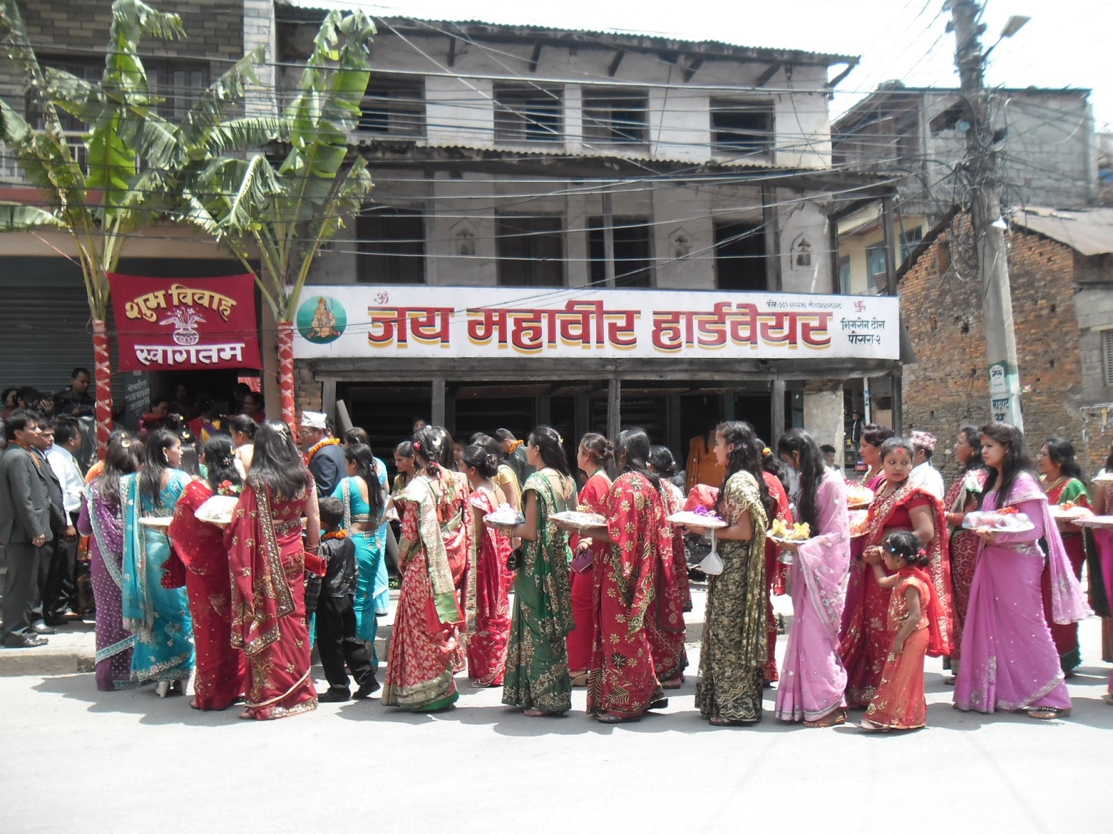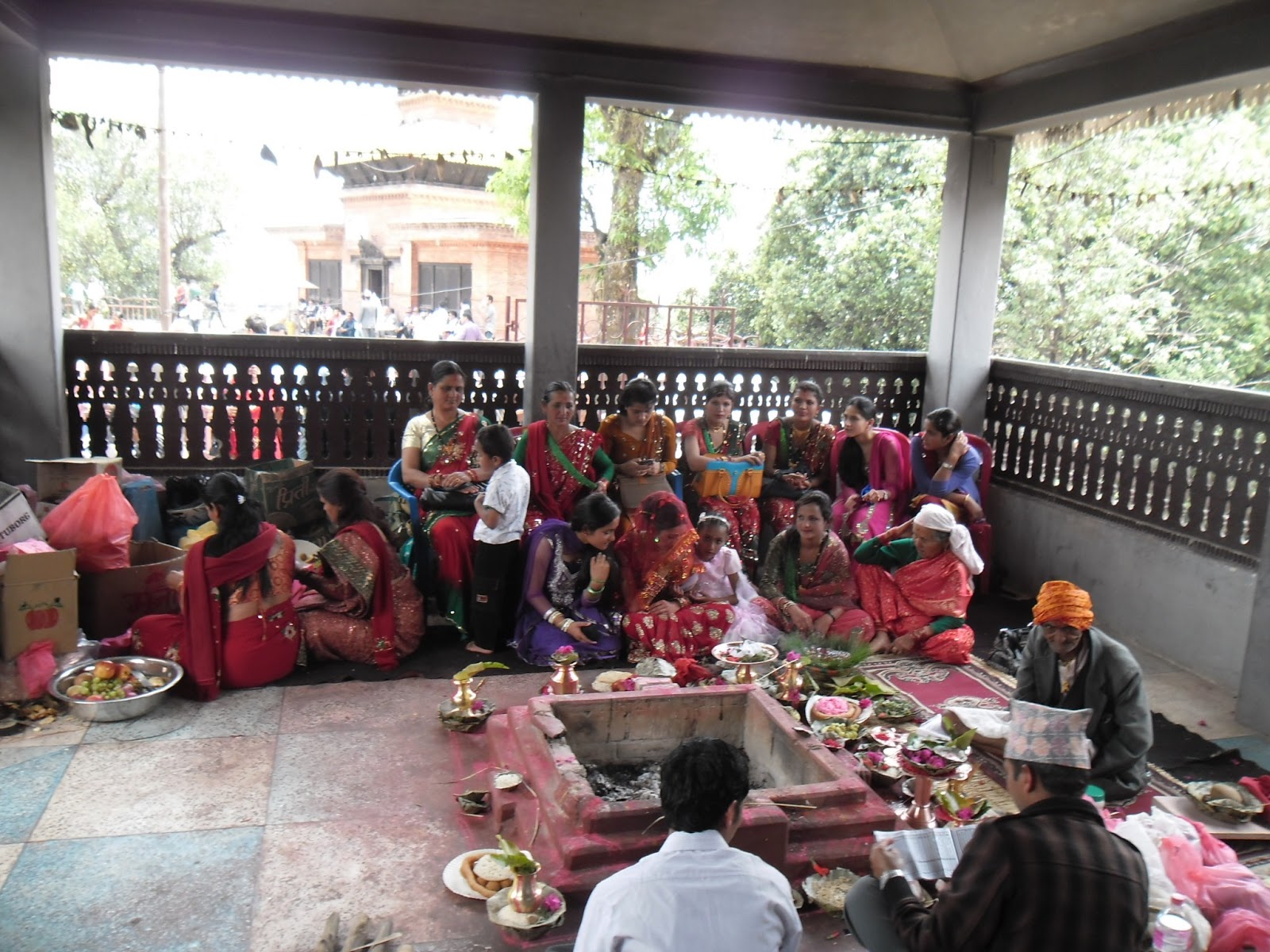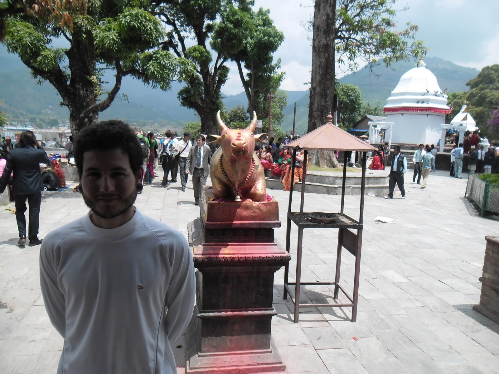 Hoy caminamos mucho cruzando toda la parte nueva y comercial de la ciudad, bastante feo por ahí al medio, hasta la zona antigua de Pokhara donde se encuentran las casas llamadas “newa” de ladrillo colorado con aberturas de madera tallada y rejas. Vimos gente haciendo trabajos en tallado en madera, muy artesanales, con gubias y martillos, un trabajo impresionante. Fuimos a dos templos, uno de adoración a Parvati, la mujer de Shiva. Ahí justo se ve que había una fiesta muy divertida. Música en vivo con distintos tipos de cornetas, largas, cortas, curvas, y distintos tipos de tambores, y hombres que se ponían a bailar. Había reuniones de ofrendas de comida, y mucha gente que pasaba a saludar uno y otro altar o que hacían ademanes de adoración a unas llamas de fuego. Estuvo bueno. También se ve que hubo muchos casamientos porque andaban caravanas de mujeres con fuentes presentadas con comida, papel celofán y moño, y más hombres con collares de caléndulas al cuello, bailando, y más bandas por las calles de aquel barrio de la ciudad donde además visitamos otro pequeño templo, Bisman, con escenas eróticas en los parantes de madera del techo. Escandaloso.