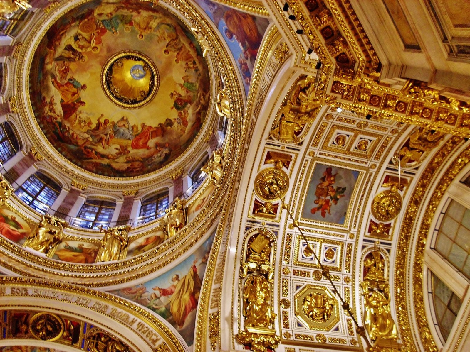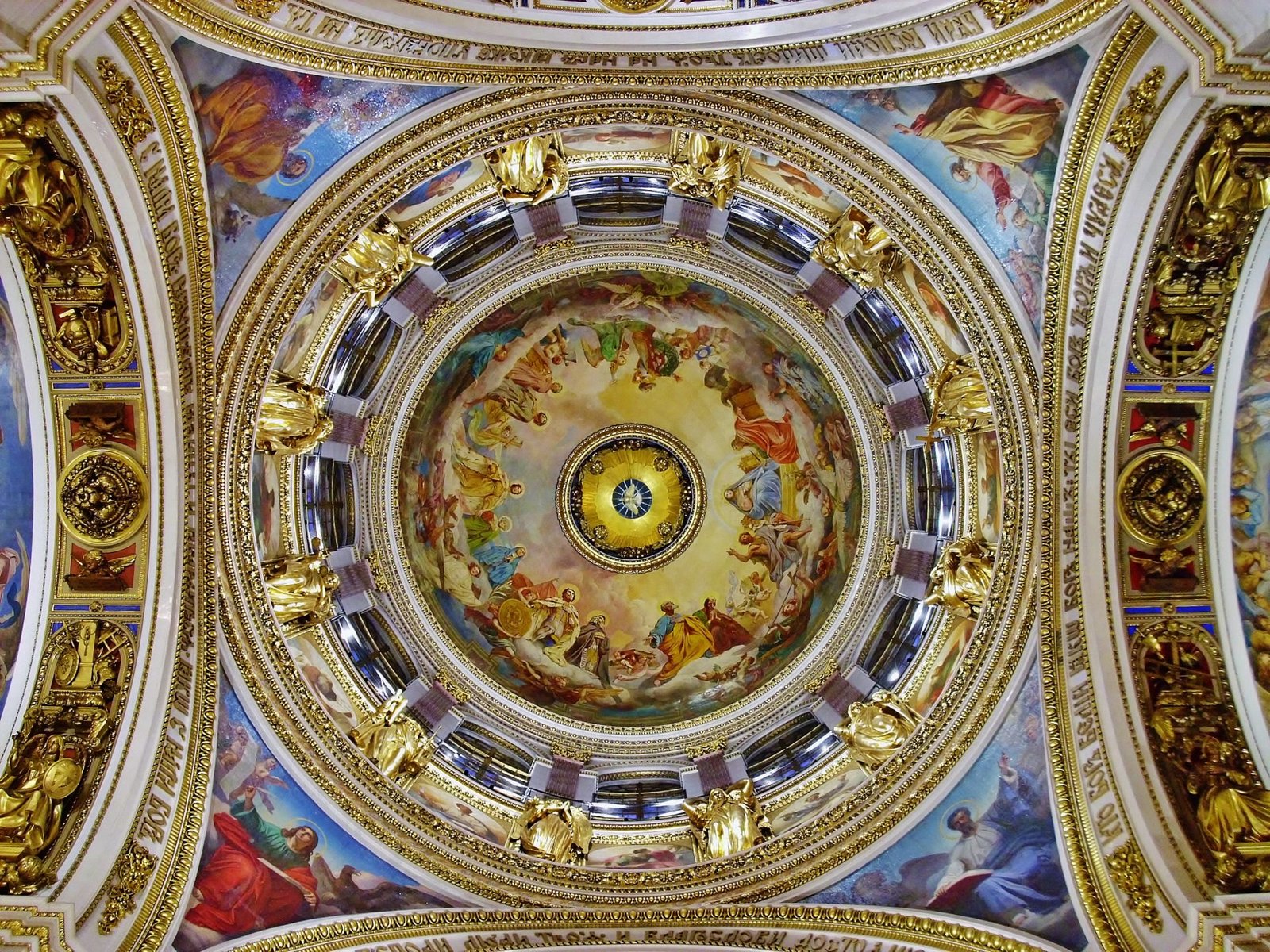 En la decoración de la catedral de San Isaac se emplearon 43 tipos de minerales. El zócalo fue revestido de granito, el interior de la catedral, paredes y suelos de mármoles, las columnas del retablo, revestidas de malaquita y lapislázuli. Para sobredorar la cúpula de 21,8 m de diámetro se emplearon cerca de 100 kilos de oro.