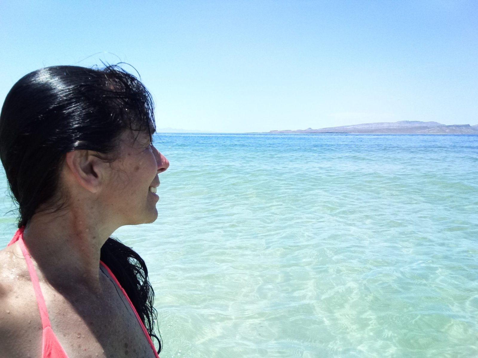 La ciudad nos encantó. La Paz tiene todo para pasarla bien junto al mar. El malecón recorre la costa y debajo la arena blanca con sombrillas de palma invitan a parar y contemplar el paisaje. El agua es transparente incluso en la ciudad. Desde los muelles se ven cardúmenes impresionantes.