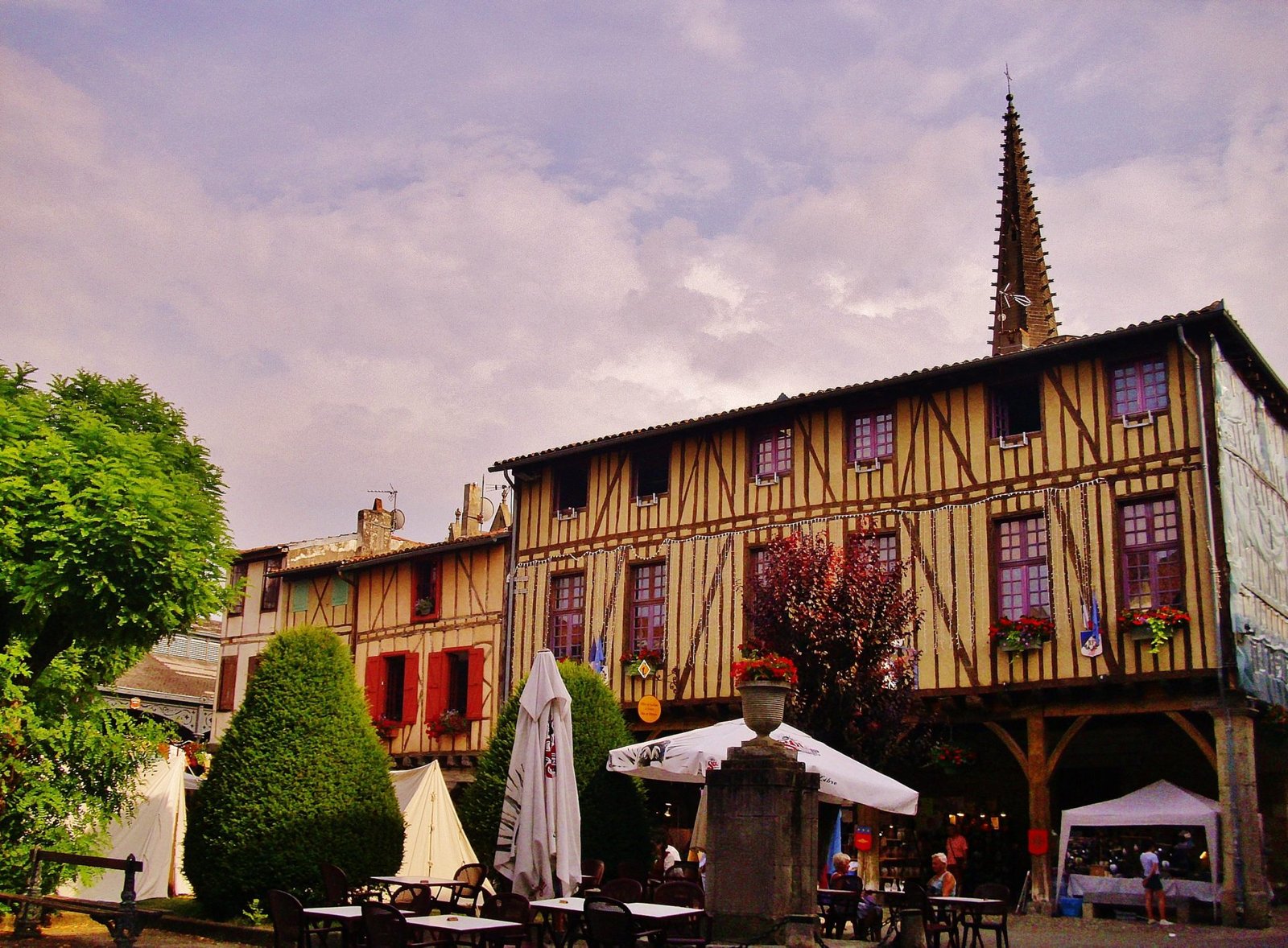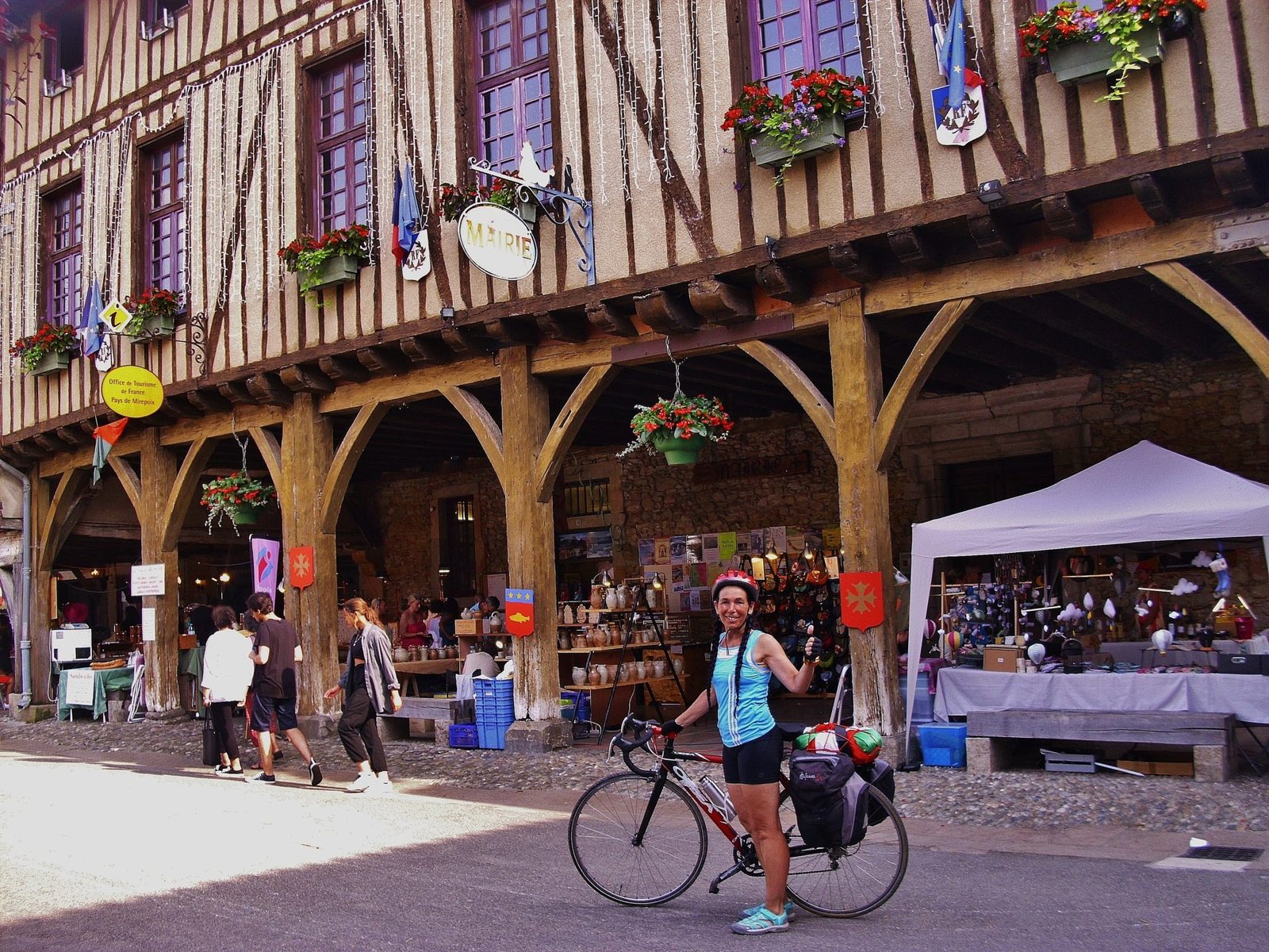 Al final, para evitar más vueltas y barro, no nos quedó más remedio que volver a la carretera transitada. Por ella llegamos hasta Mirepoix, una ciudadela medieval con encanto y donde justo se celebraba un festival. La plaza y las recovas estaban llenas de música y gladiadores. La gente andaba vestida como en la época de los juglares, tocaban instrumentos antiguos, bailaban y participaban de competencias de tiro con arco.