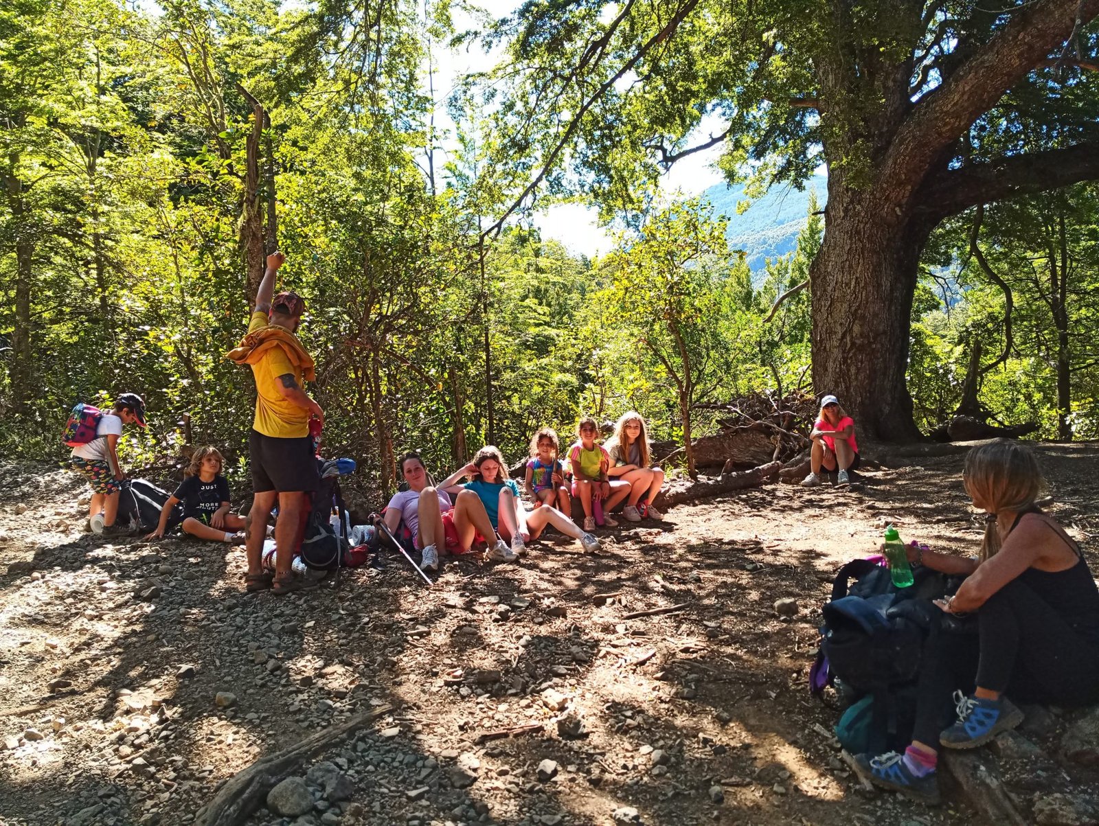 Bajamos por La Playita, seguimos bajando más y más. Descansando en los recodos, bebiendo del manantial, sentándonos un ratito a la sombra de un abedul o de un alerce, o de un par de coihues, comiendo chilcos, calafates, buscando frutillas y frambuesas. Al final, la polvareda, y eran los más chicos llevando la delantera.