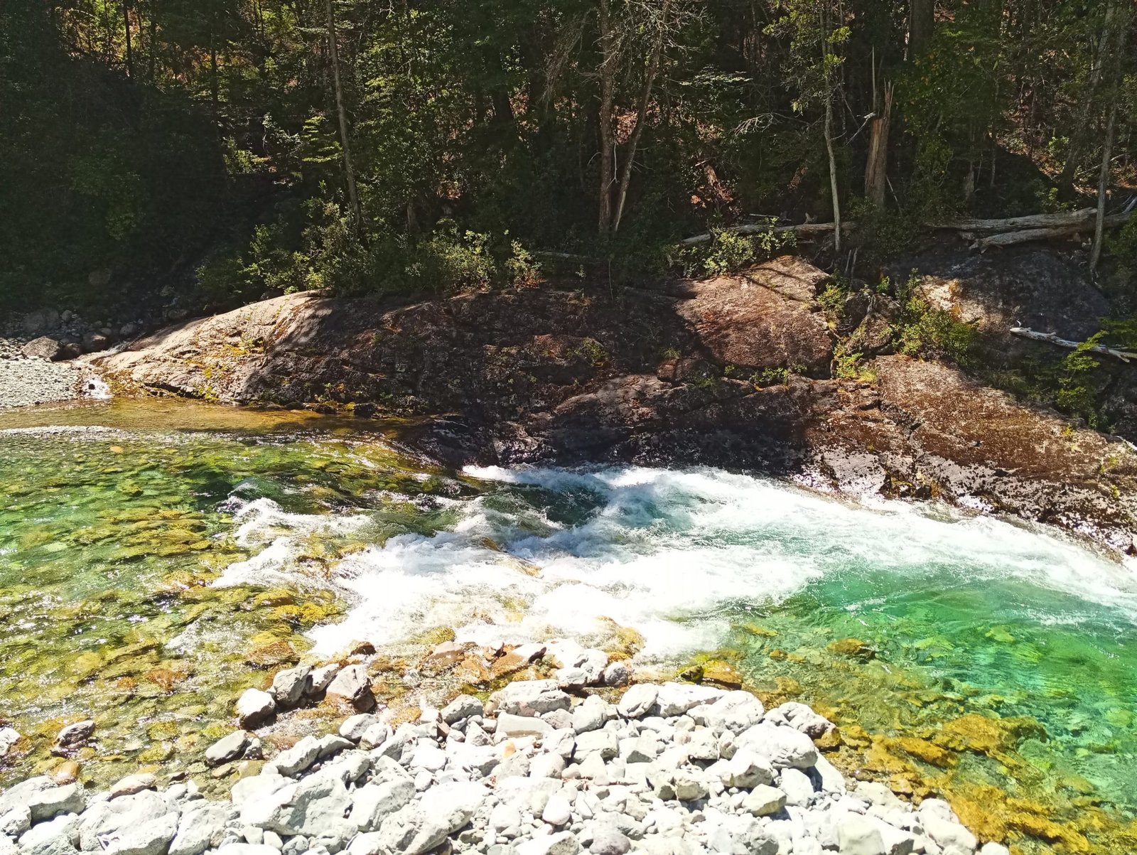 Cuando logramos avanzar más allá de este encantamiento litúrgico de la fuerza del alerzal, no tarda en sorprendernos el sonido estrepitoso de cascadas y rápidos del río.