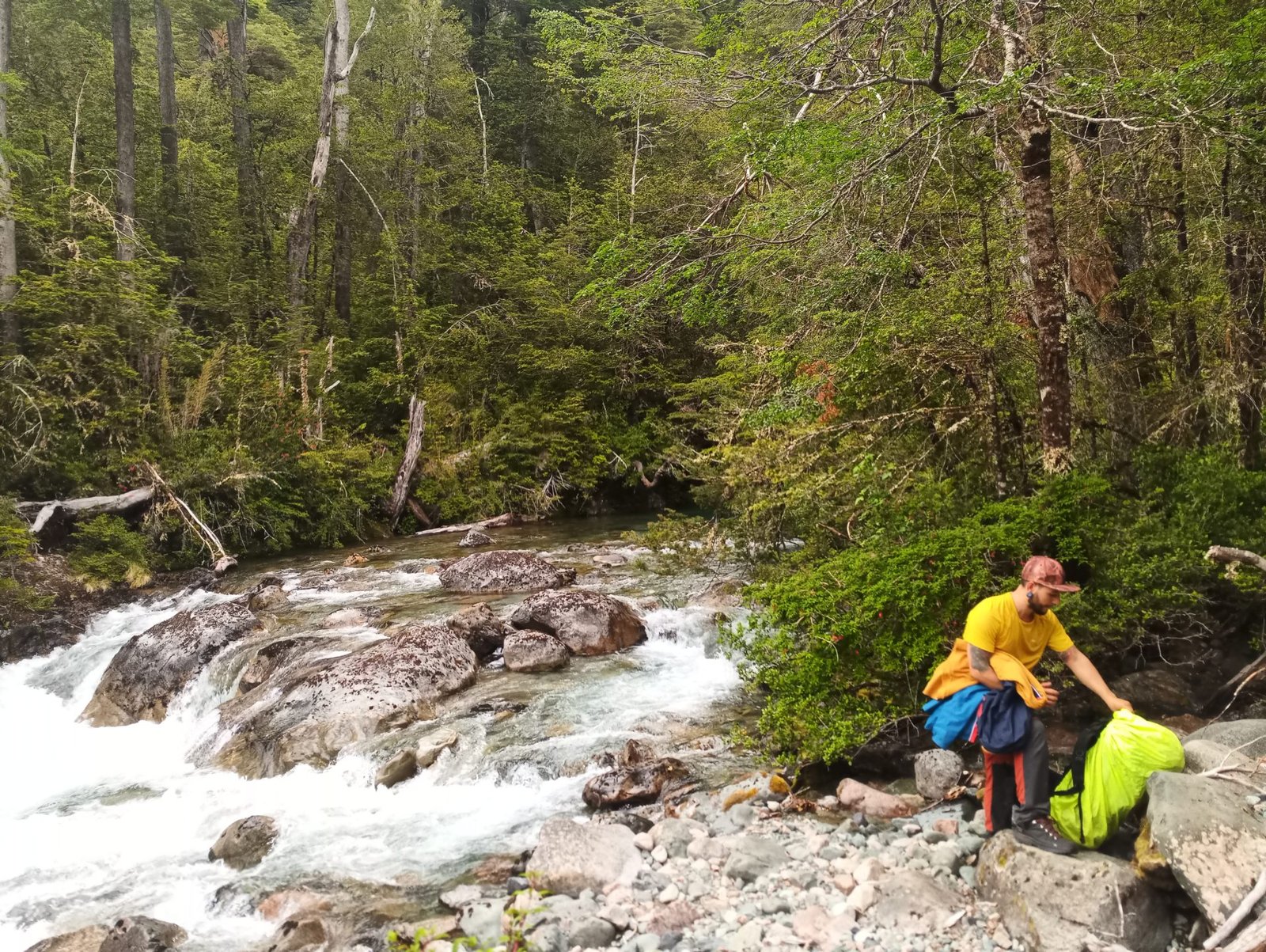 Le dimos duro. Agu y su pareja no pudieron llegar ese día y decidieron acampar más abajo junto a un arroyo. Junto a ese arroyo nosotros habíamos almorzado algunas horas antes de que la lluvia arreciara.