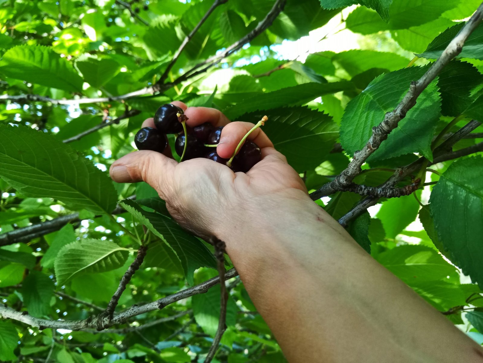 El camping de Río Azul está en un lugar soberbio, sobre el río y bajo enormes cerezos y frutos rojos que da gusto comer al paso y son deliciosos y saludables.