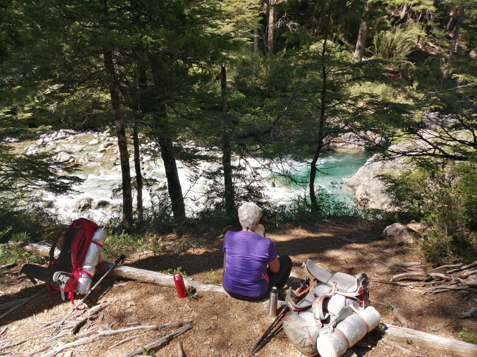 Recargadas las pilas, recargamos las mochilas y salimos a lo de Beto. Es bastante cerca. Menos de una hora. Camino fácil. Primero baja hasta el río y después es sinuoso.