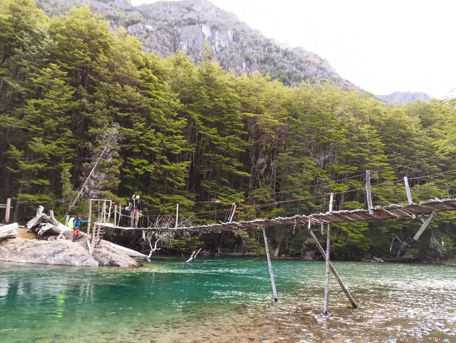 Para dormir en el camping Rincón del Motoco hay que cruzar la pasarela de Puelo y desde allí caminar una media hora hasta el camping.