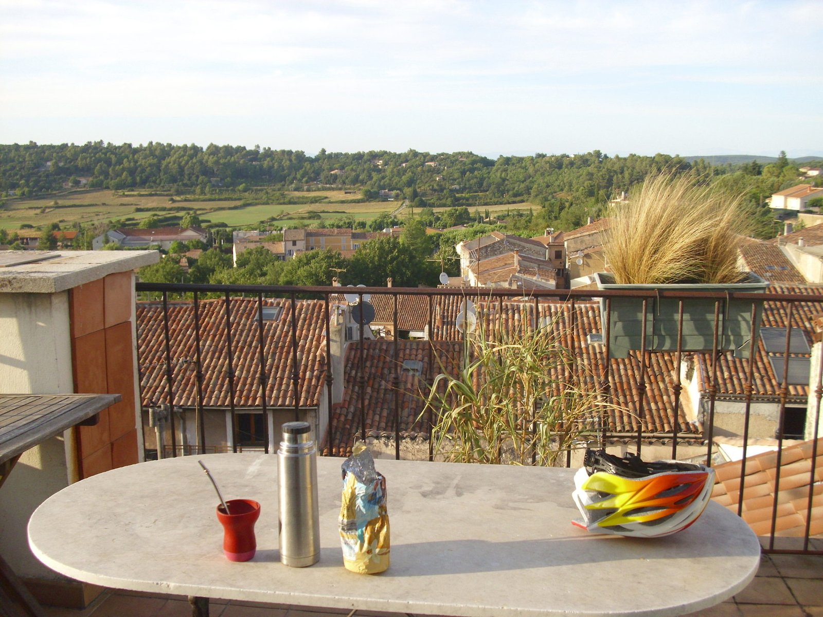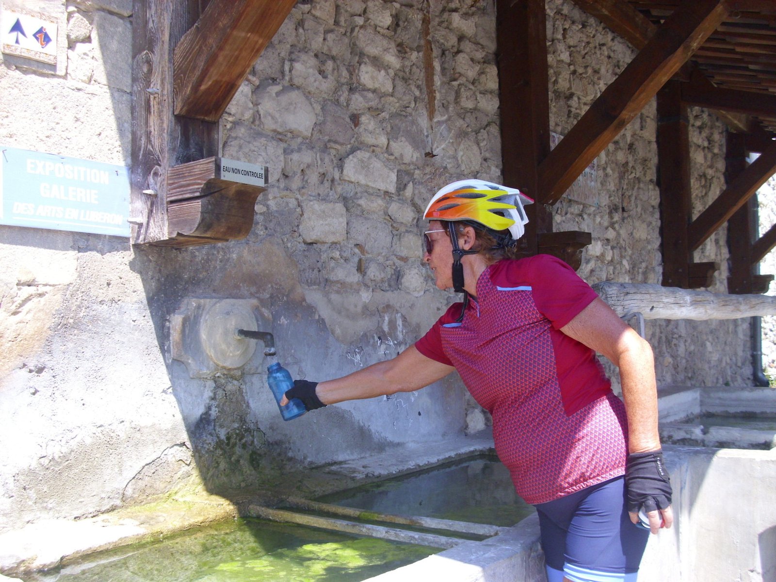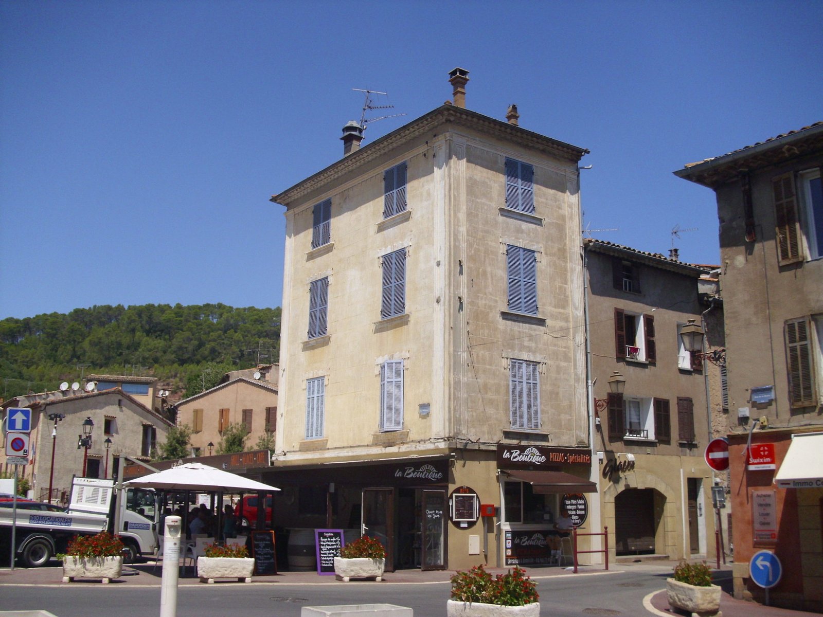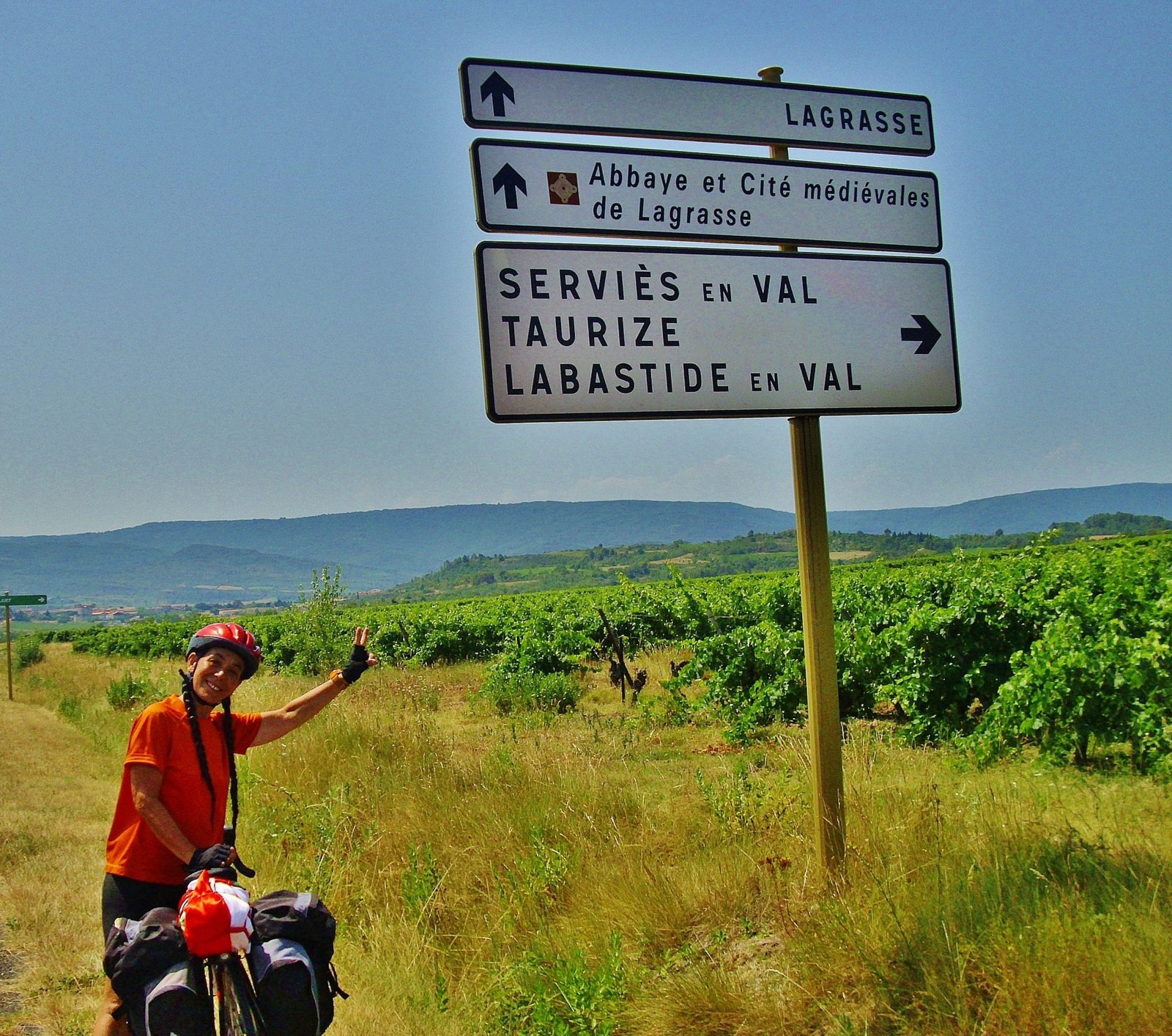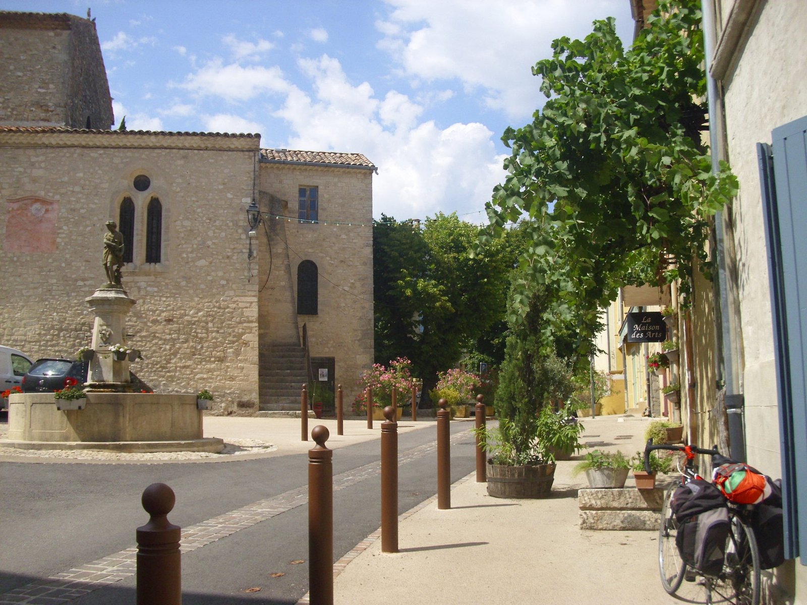 Tomamos el camino a Draguignan por carretera de coches. Pasamos por Flayosc donde quisimos consultar por dónde tomar la Eurovelo o alguna otra pista ciclable, pero la empleada de turismo de Flayosc no sabía nada. Continuamos pedaleando con un tráfico bastante concurrido hasta Draguignan donde, en este caso, la chica de Turismo sí era muy solícita e informada y nos indicó cómo tomar la Vía de Vignes.