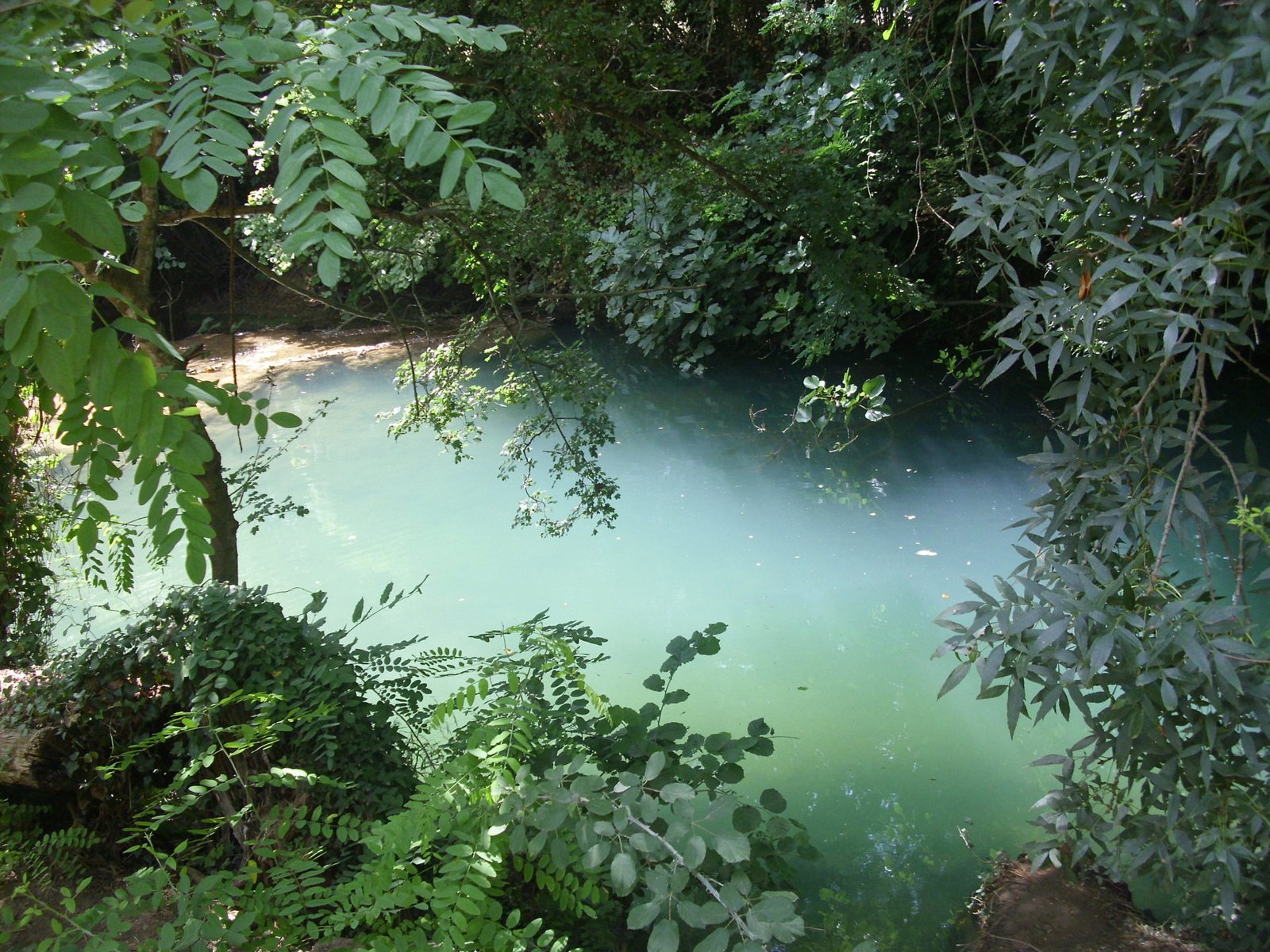 Se pasa por una cascada que no es muy llamativa pero que amerita un breve parate. Disfrutar del rumor del agua y respirar el aroma del lugar. El agua que cae, se escurre por el terreno desparejo formando pozones de agua azul.